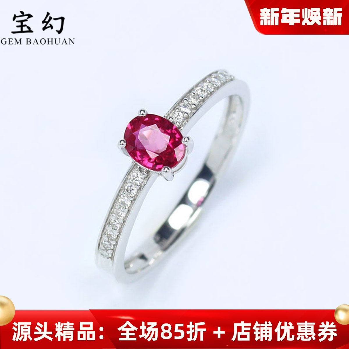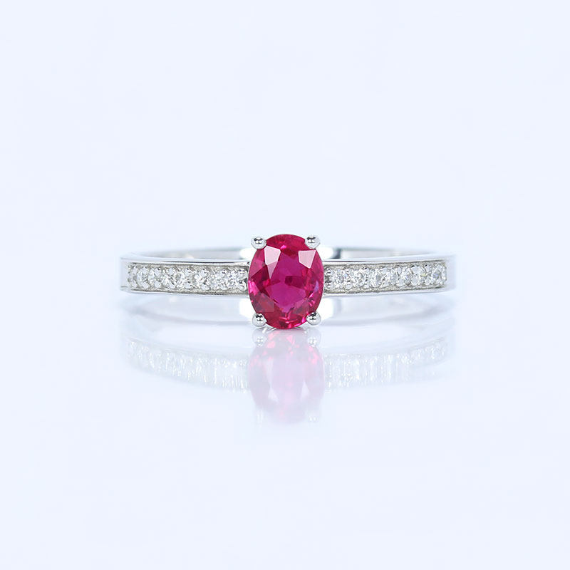 18K白金天然红宝石四爪戒指 正红色镶钻石通勤手饰女款正品