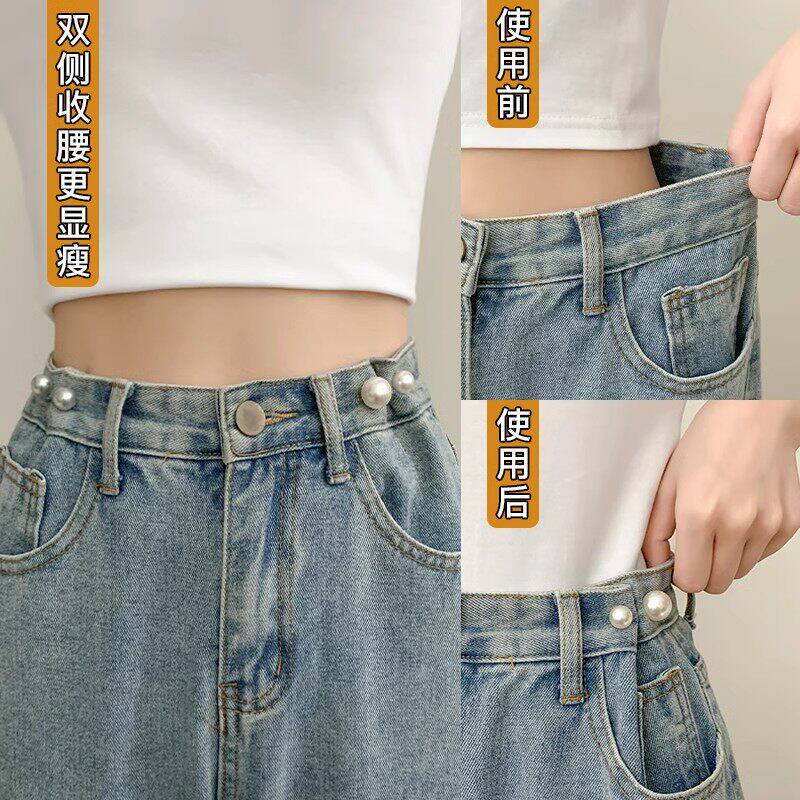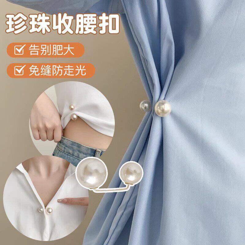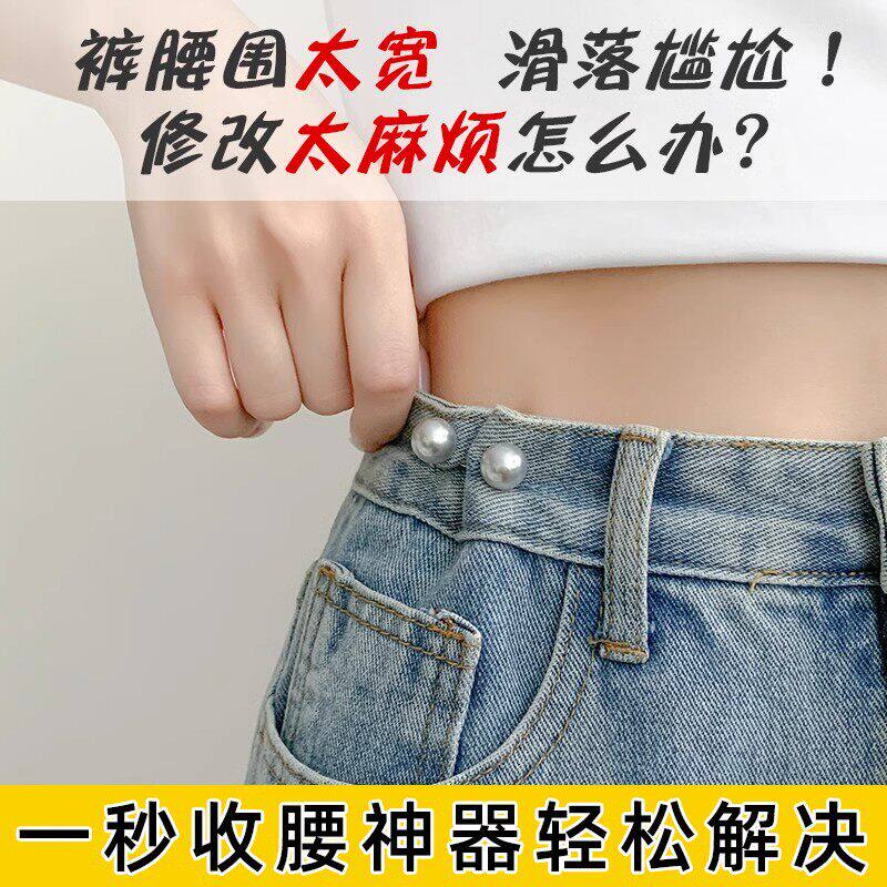 蝴蝶收腰扣子免打孔裤子裙子牛仔裤腰围改小固定神器珍珠收紧纽扣