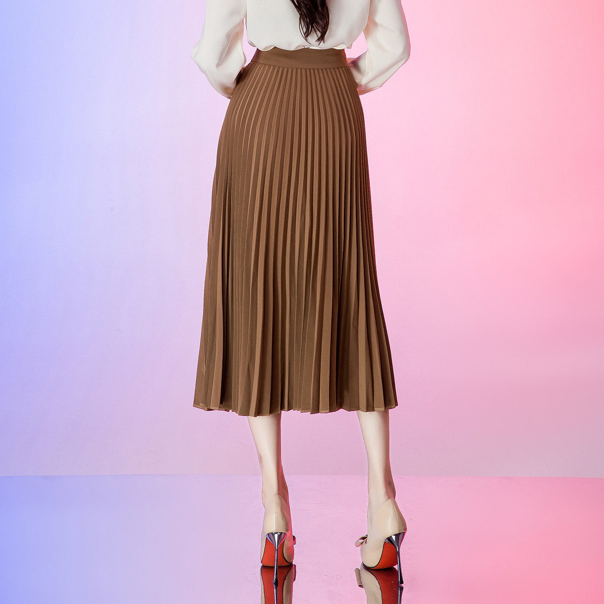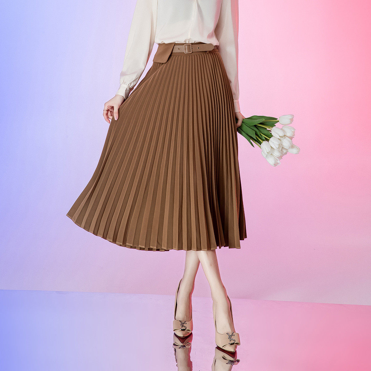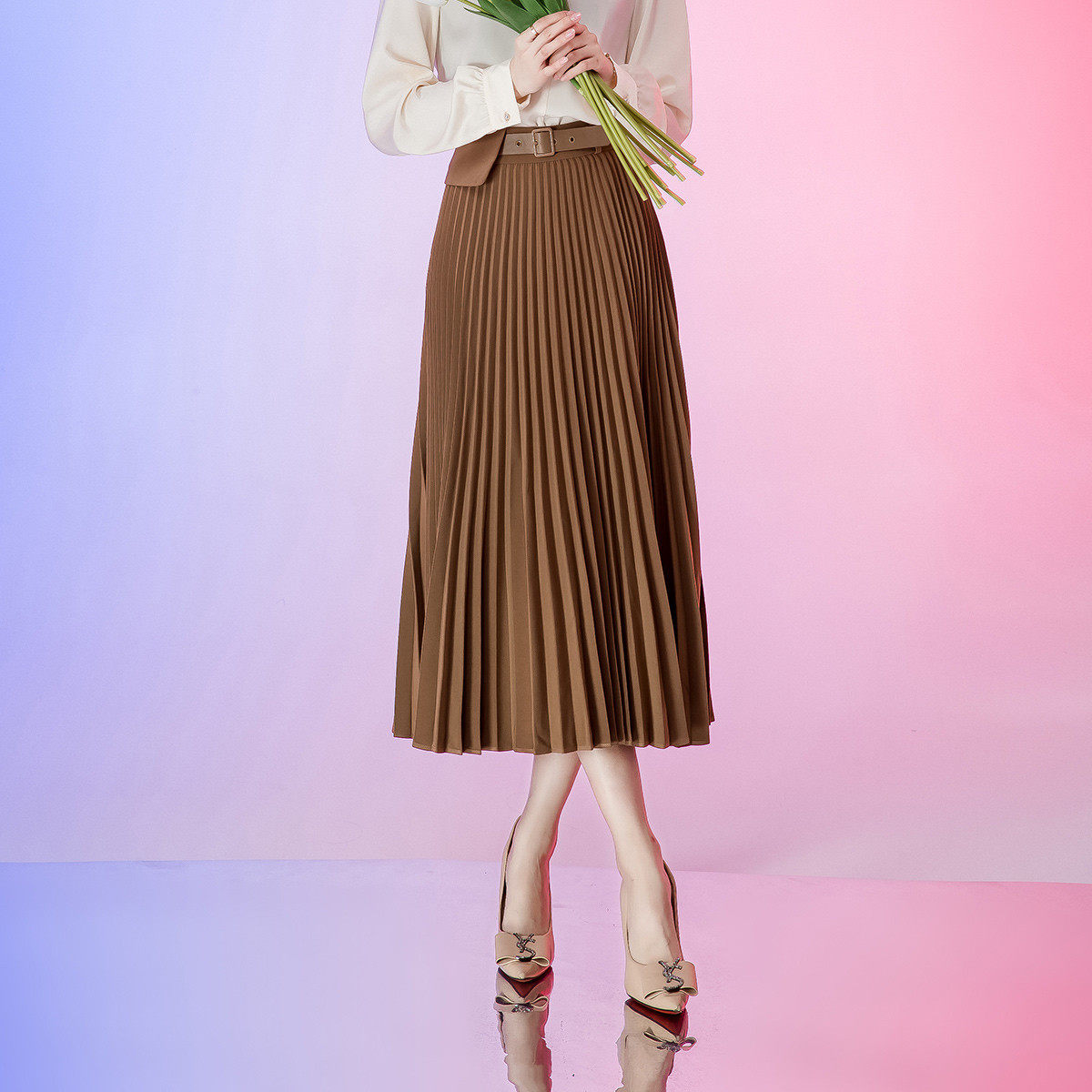 极尔斯 桃花皱半身裙