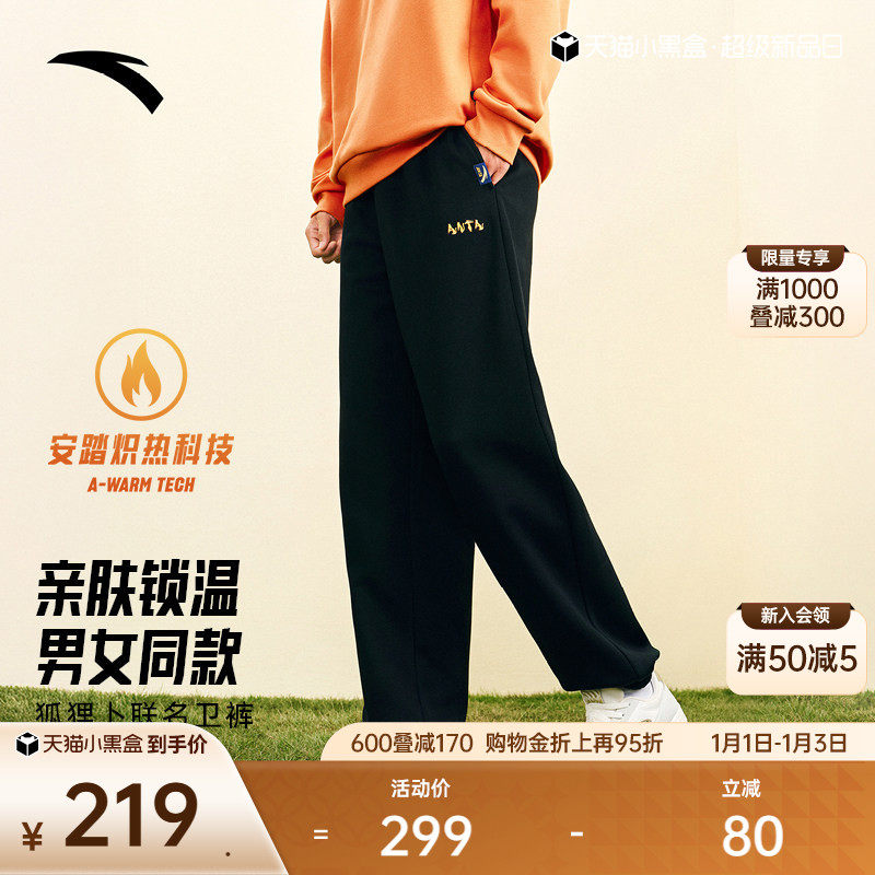 安踏×狐狸卜联名丨休闲长裤男女同款冬季加绒保暖百搭运动裤卫裤