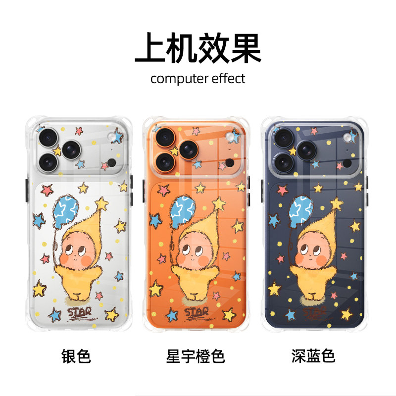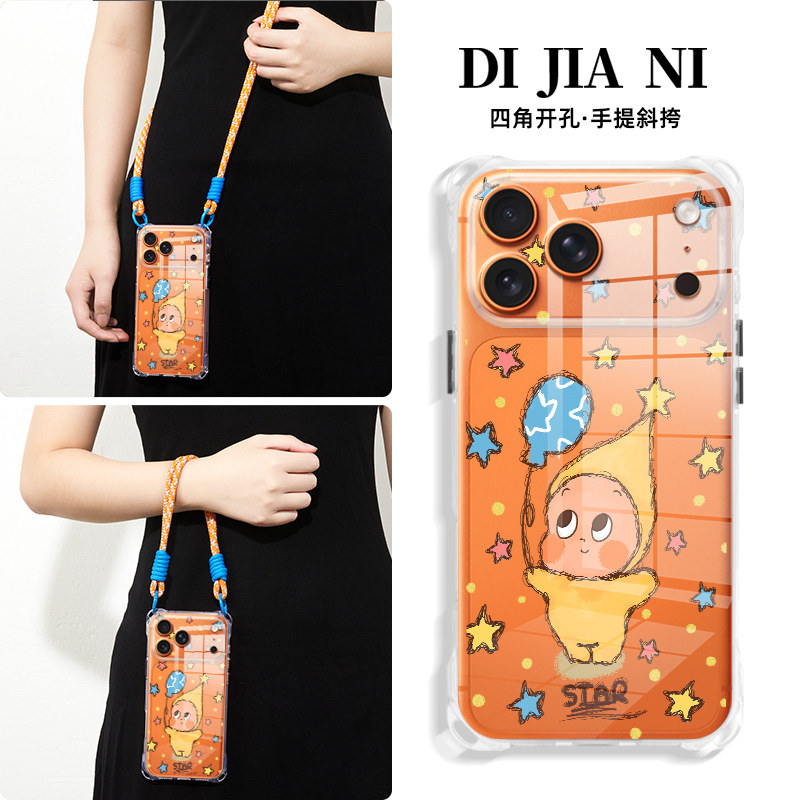 可爱气球星星人迪加尼适用iPhone17promax手机壳新款日韩苹果16透明15pro手提挂绳14女款网红13斜挎可背12