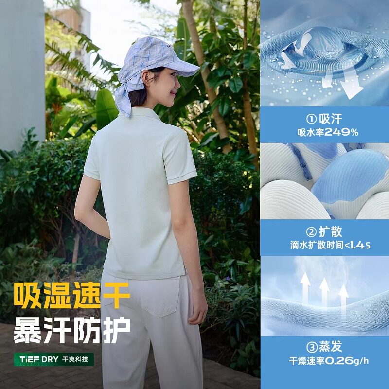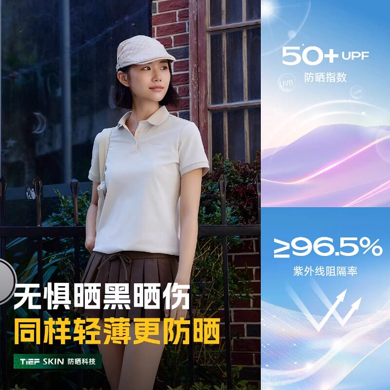 探路者速干短袖T恤女立领轻薄透新款户外防晒UPF50+短袖气POLO衫