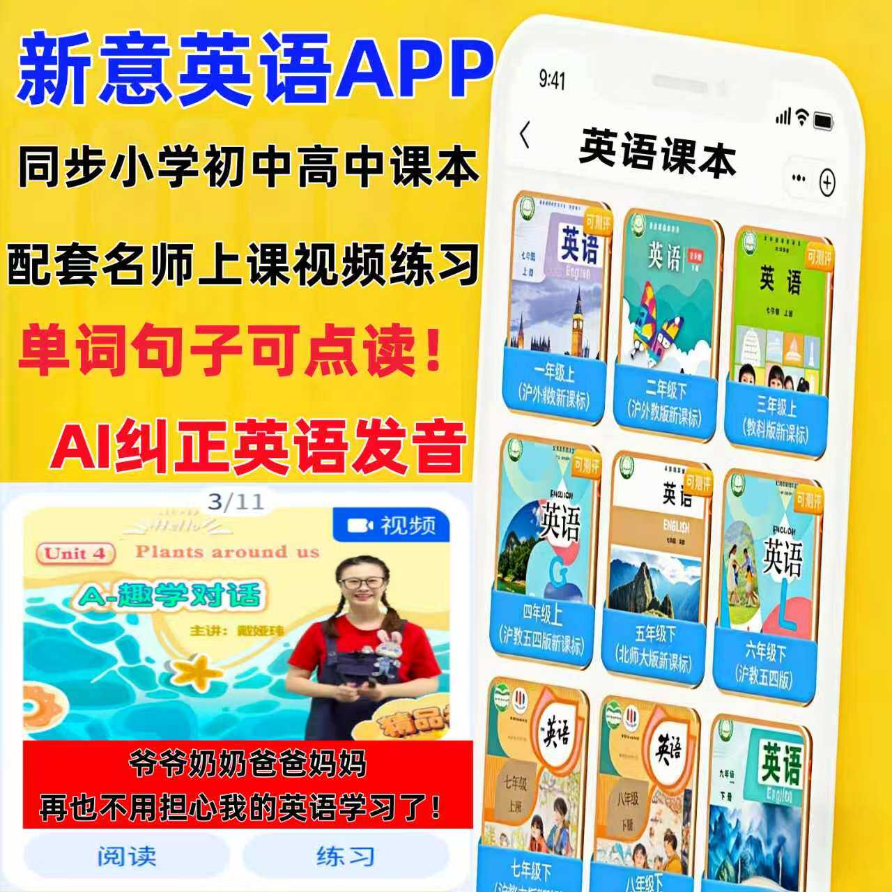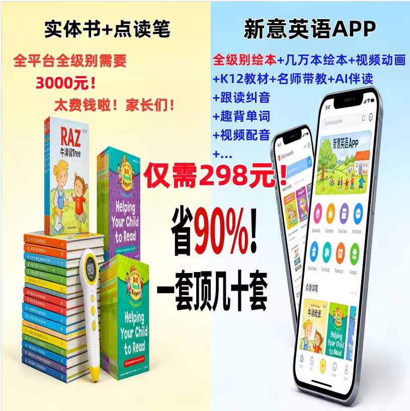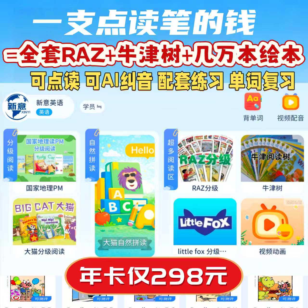 新意英语app牛津树raz英语绘本阅读分级讯飞AI语音纠音启蒙点读机