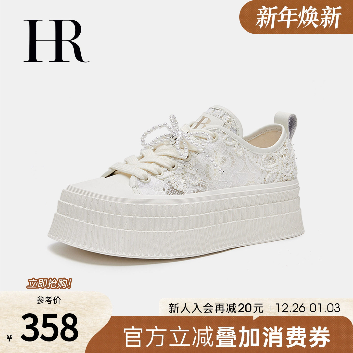 HR赫莲娜板鞋2025夏季新款网面女鞋子厚底新中式刺绣小白鞋松糕底
