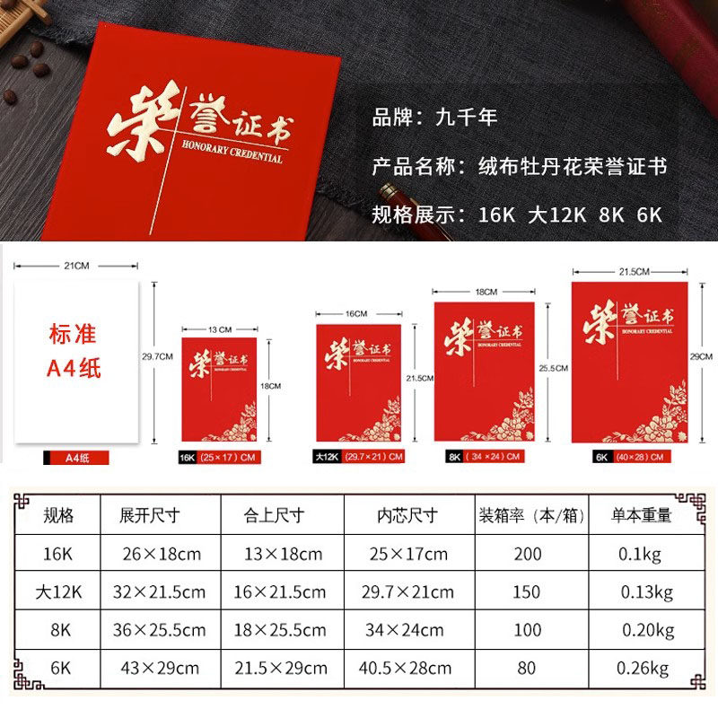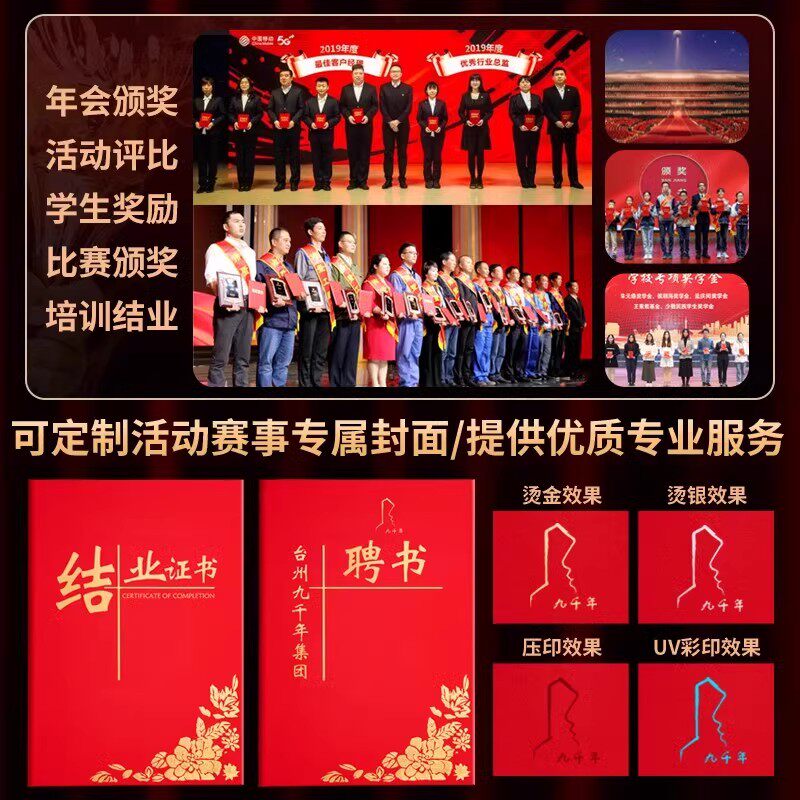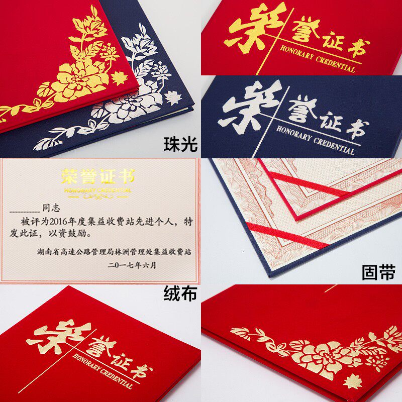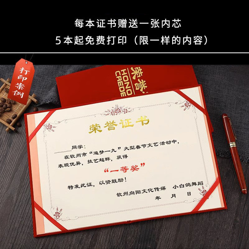 荣誉证书定制企业员工奖状外壳封皮封面保护套制作A4内页内芯打印