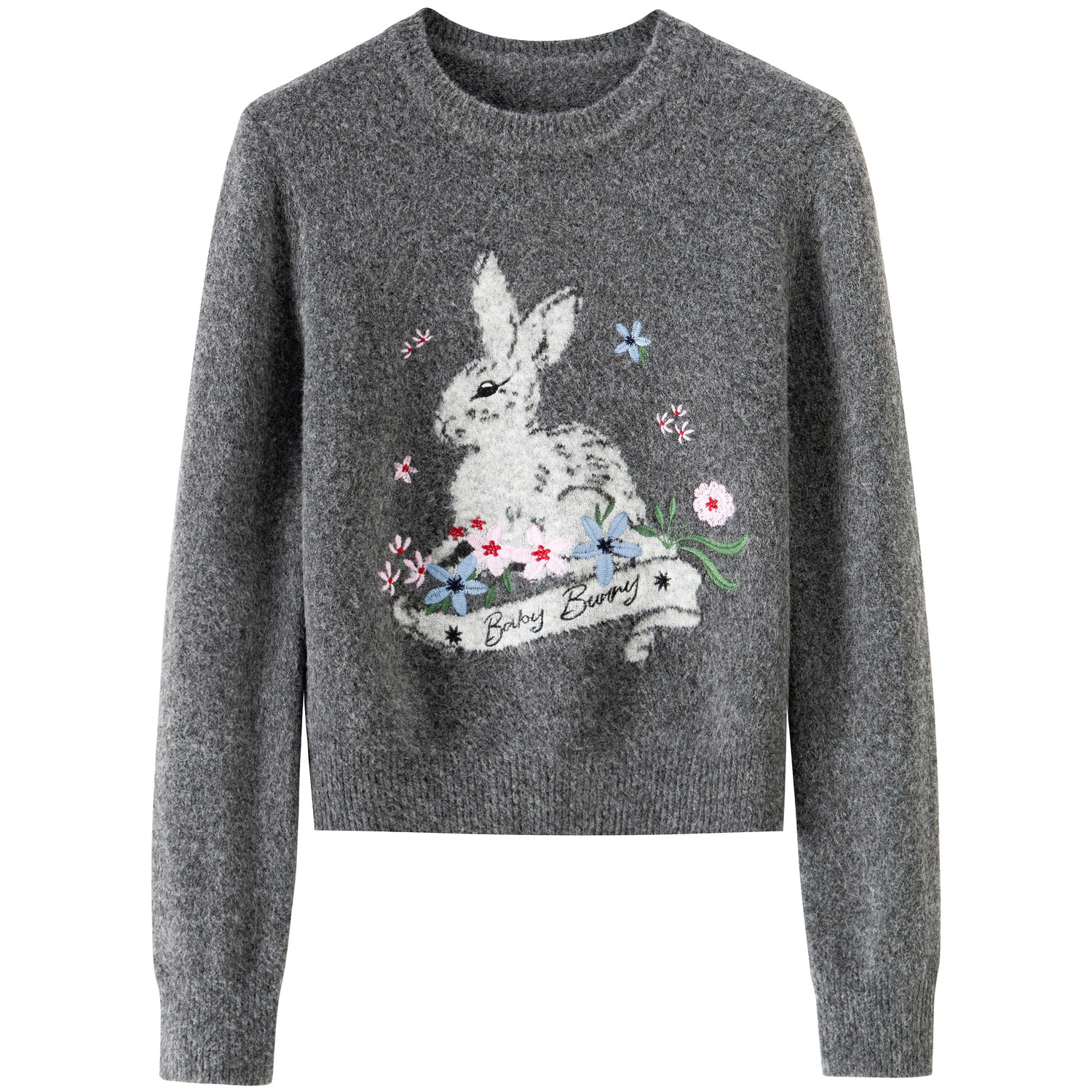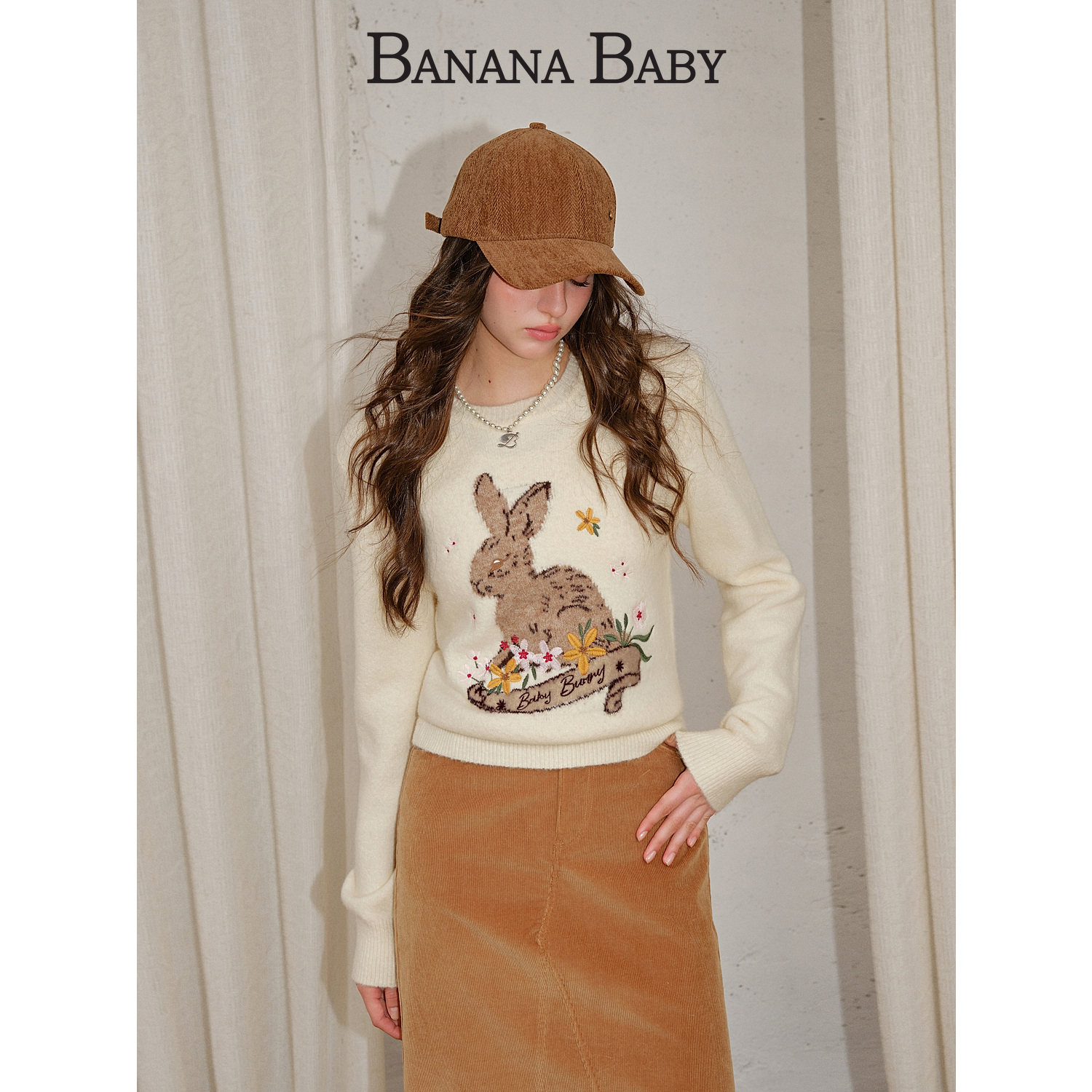 【郜思雯同款】BANANA BABY2025年冬季新款绵羊毛提花毛衫女毛衣
