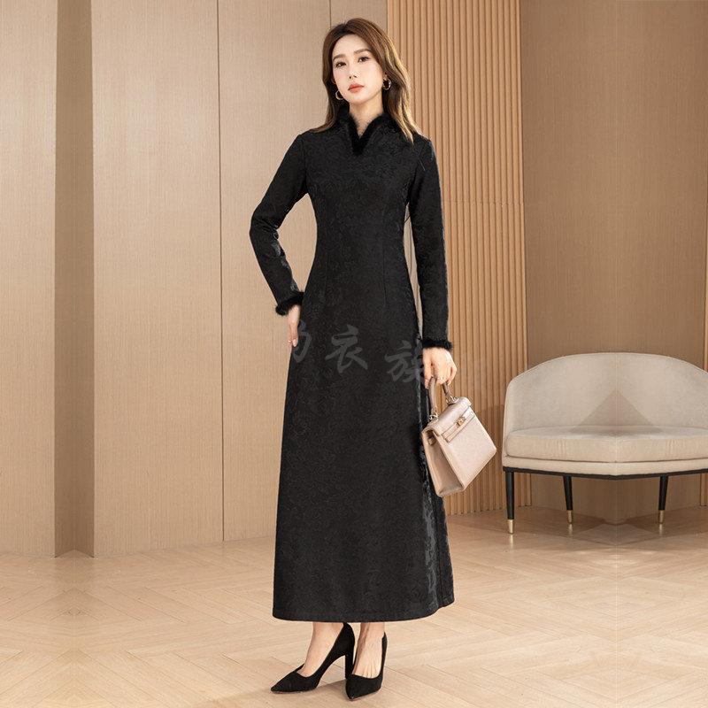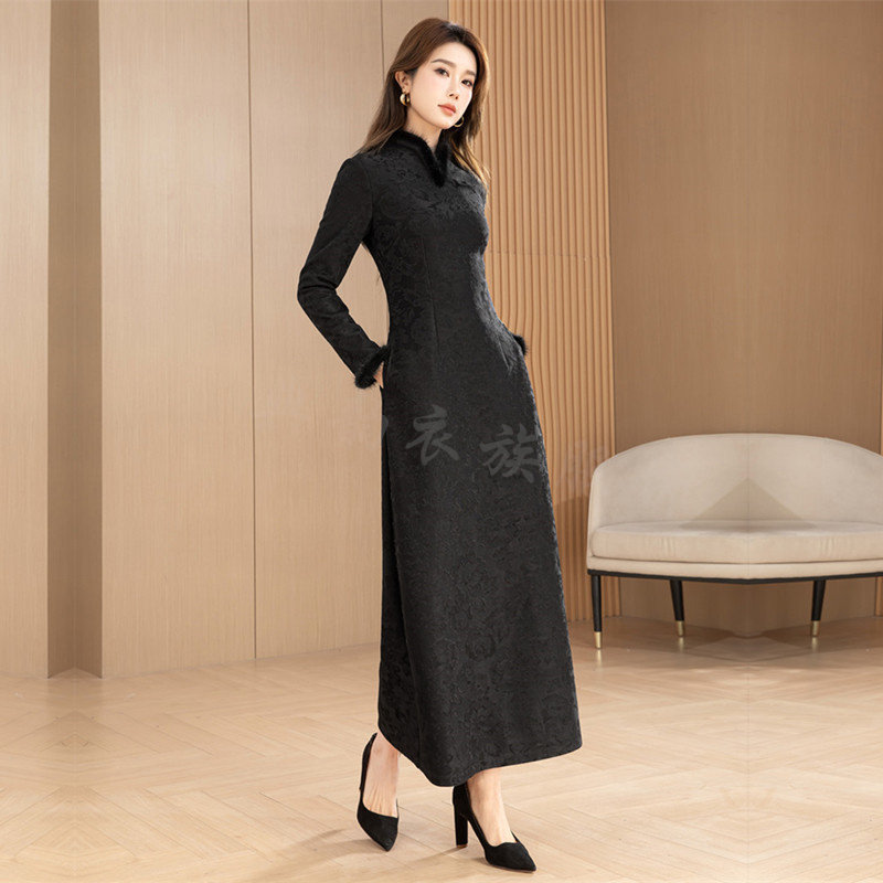 高级感提花连衣裙女秋冬款2025新款高端精致加绒长款裙子气质长裙