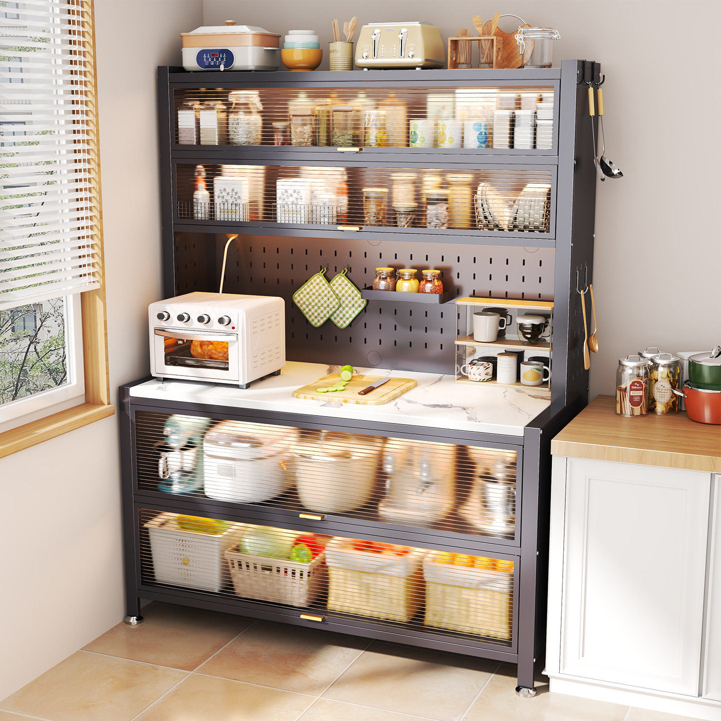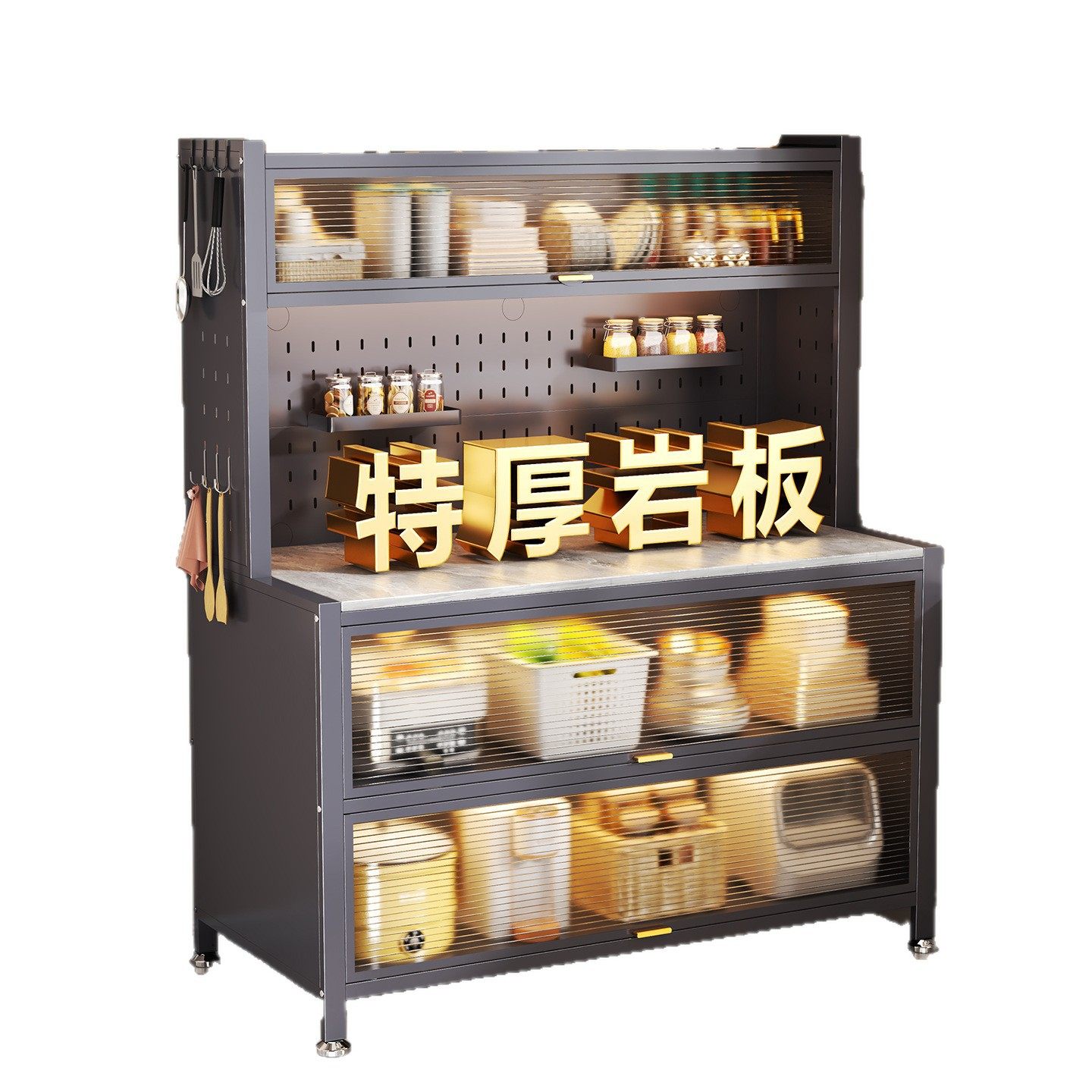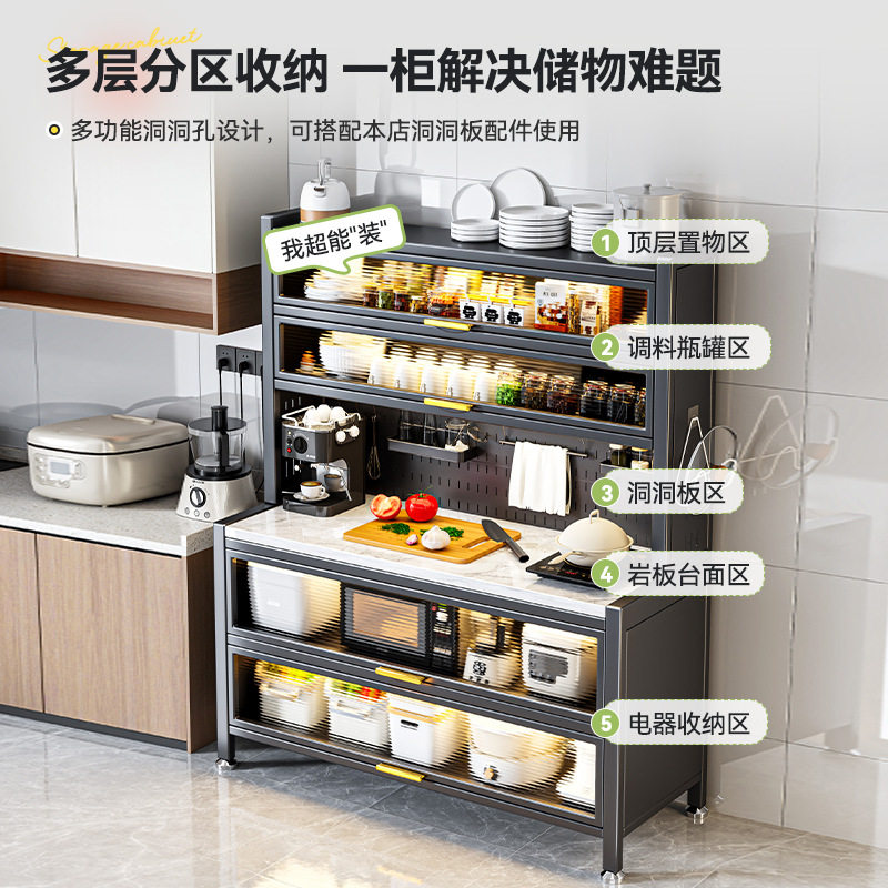 厨房多用途储物柜多层岩板台面餐边柜一体靠墙钢制收纳柜家用碗柜