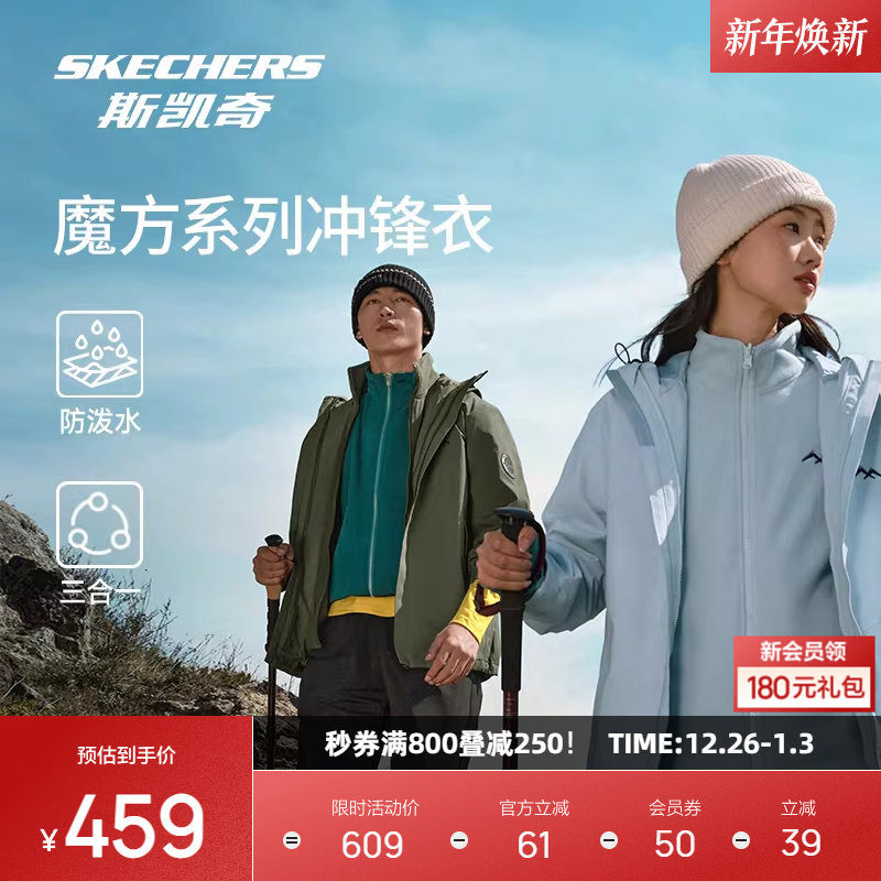斯凯奇魔方三合一冲锋衣秋冬男女防风防水运动户外保暖摇粒绒外套