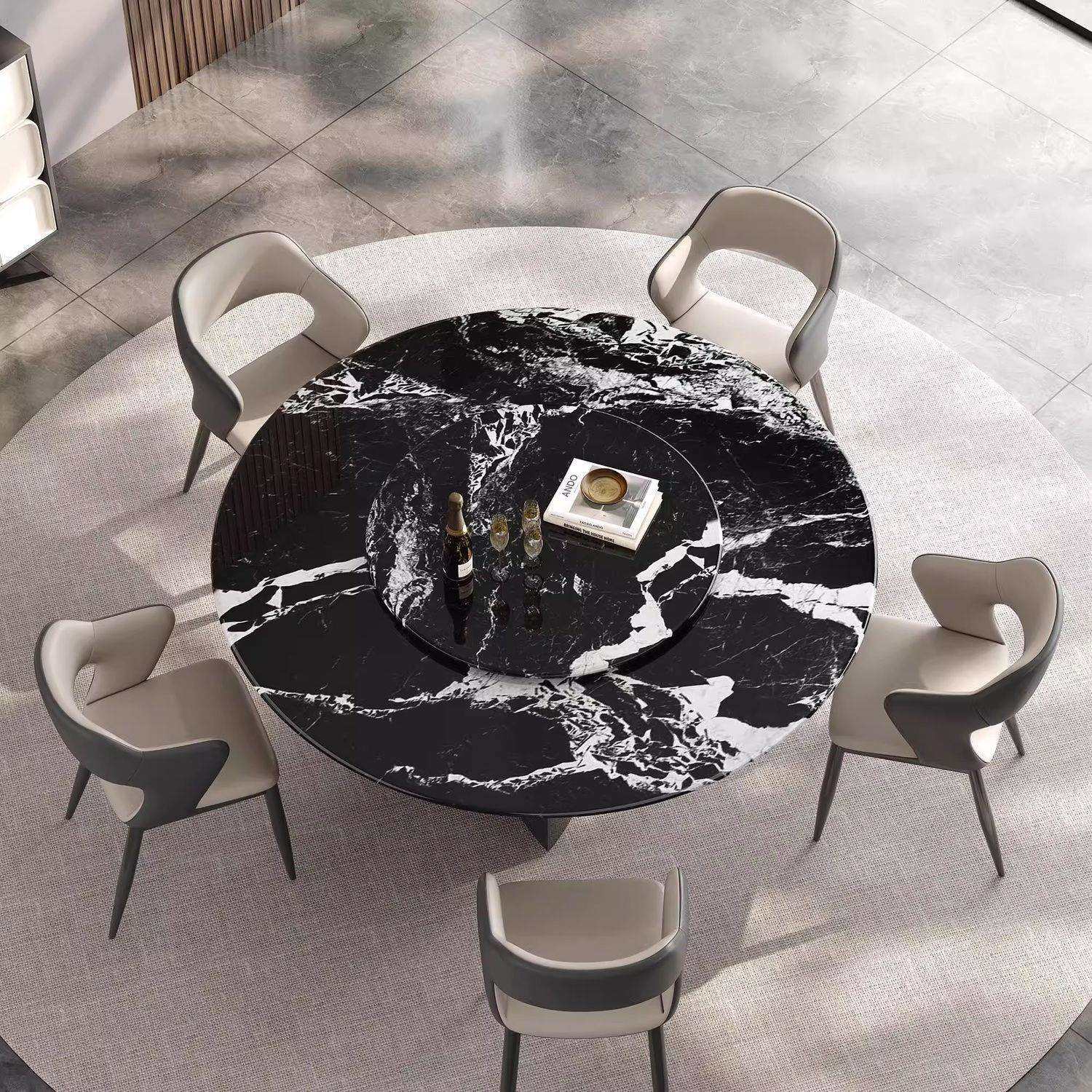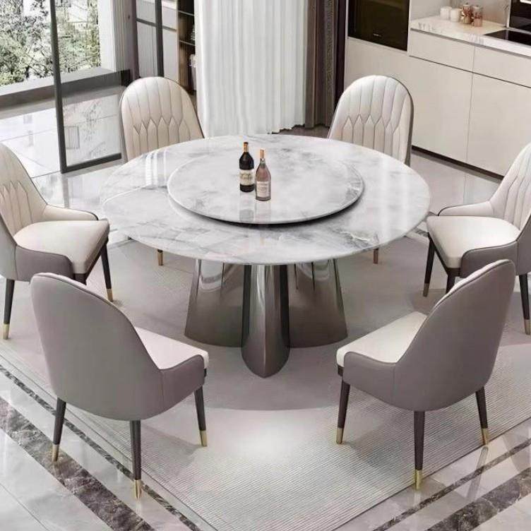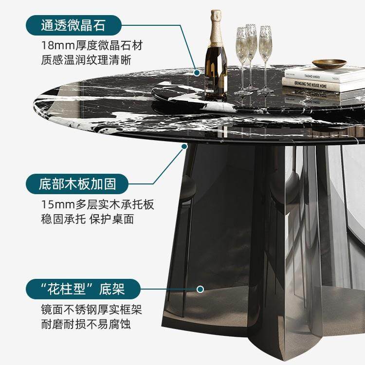 大理石圆形餐桌椅奢石家用小户型饭桌高端意式极简轻奢微晶石圆桌