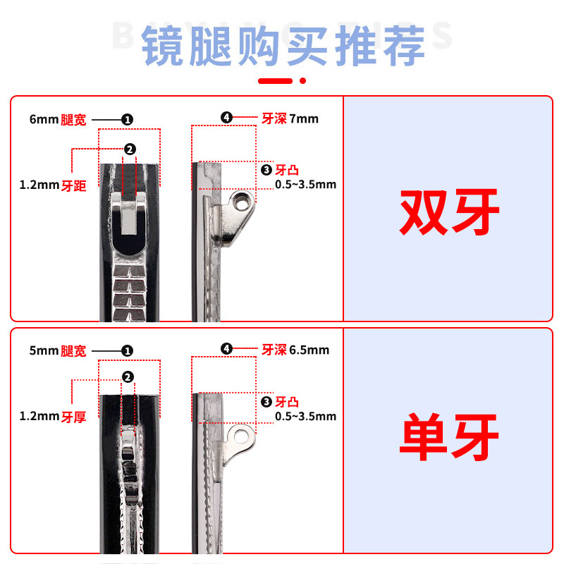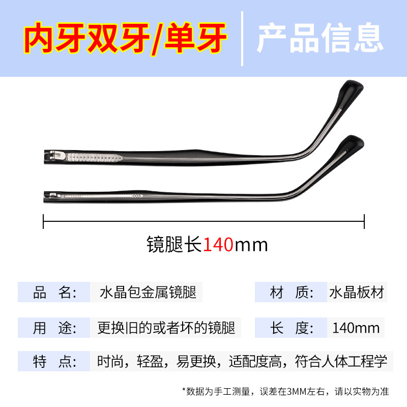眼镜腿双牙单牙镜腿断裂修复合金水晶材质时尚休闲男女通用更换