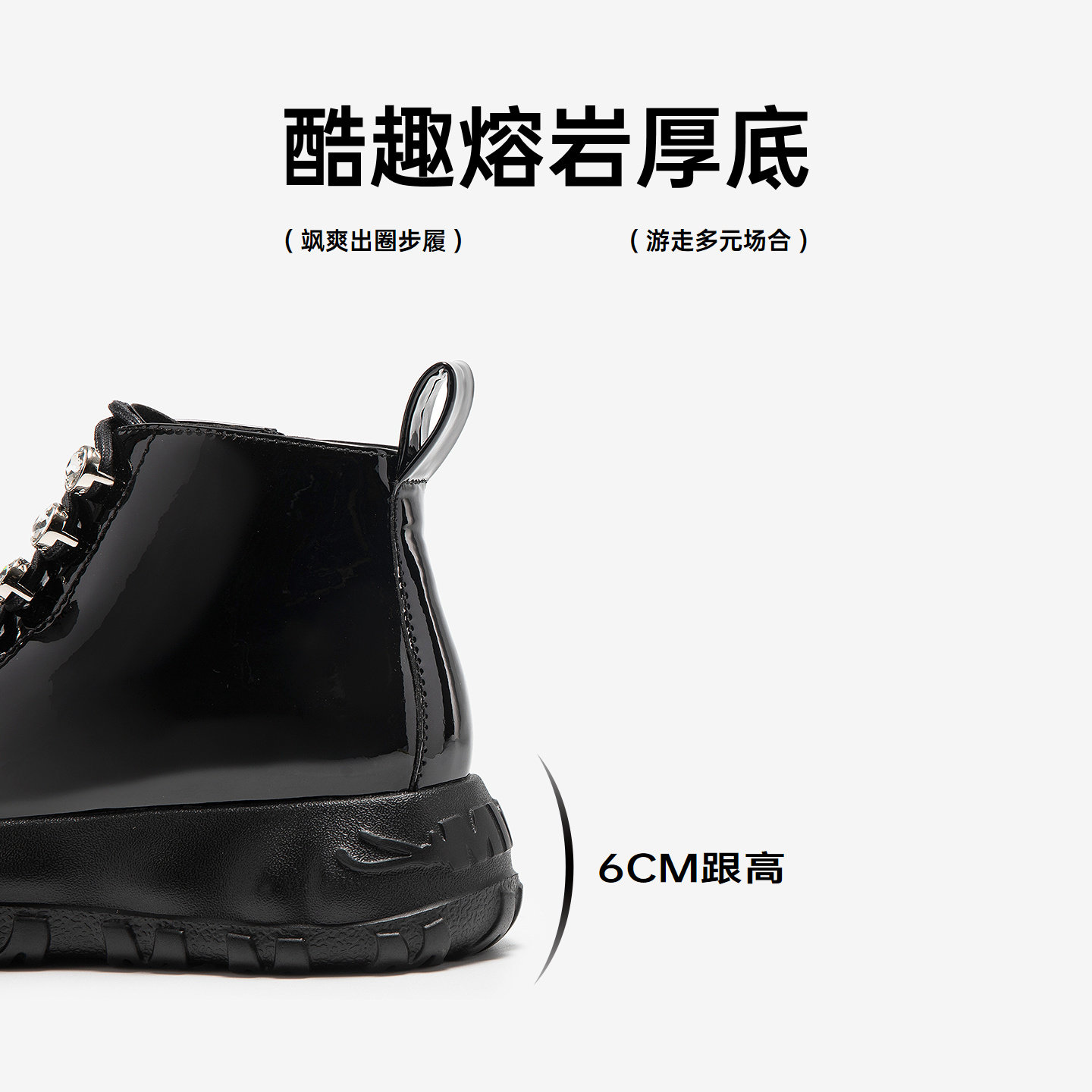 天美意粗跟厚底增高加绒英伦马丁靴女鞋子休闲短靴皮靴2025冬新款