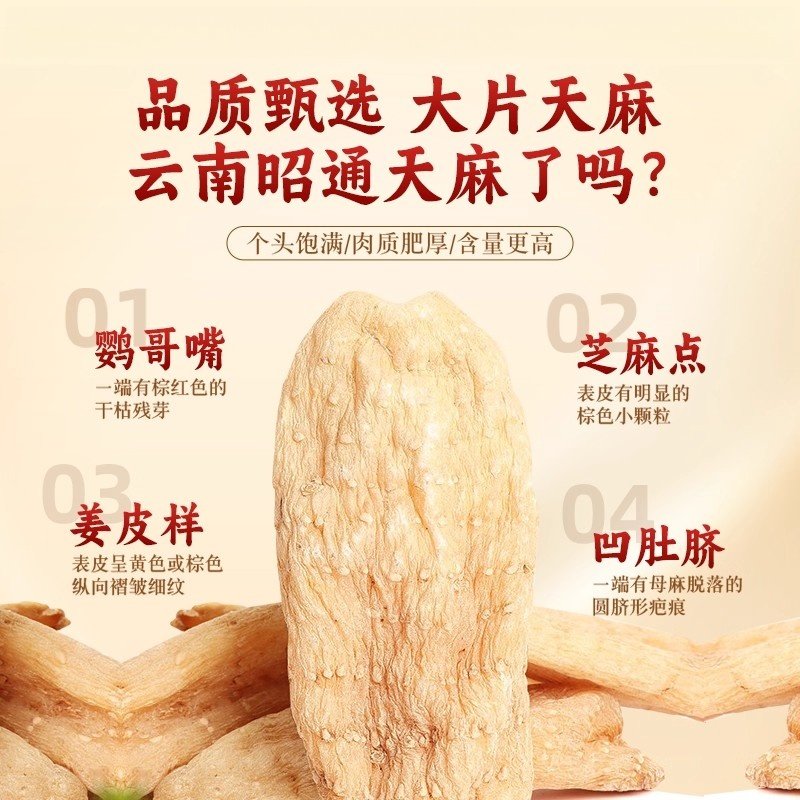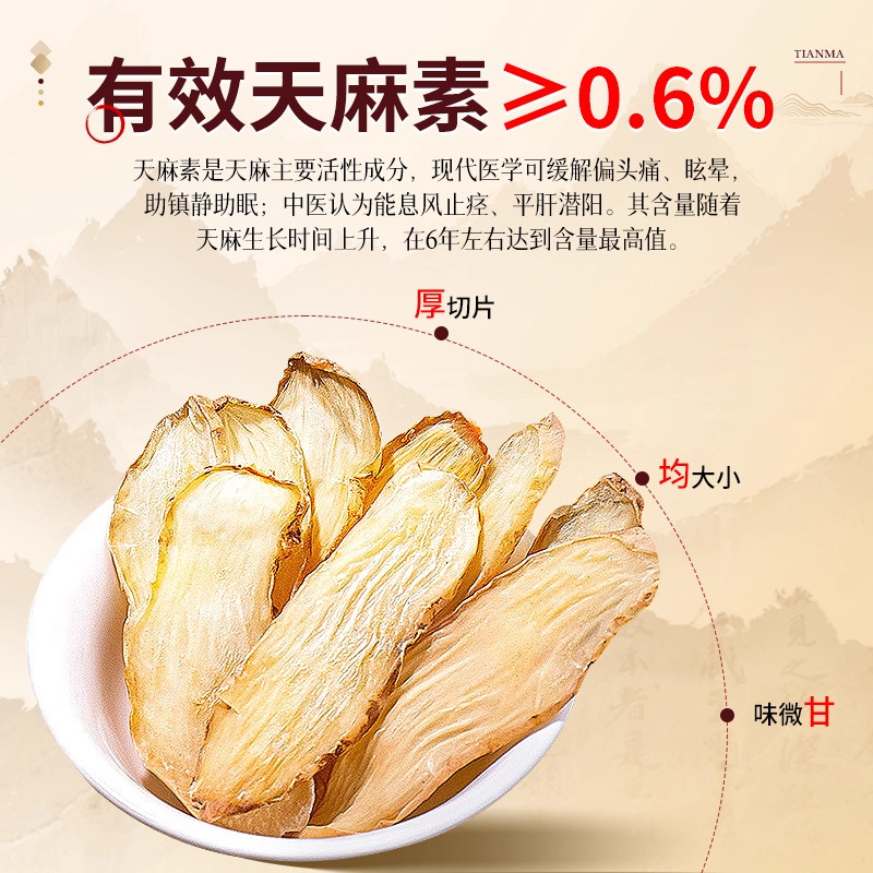 云南昭通天麻中药材野生特级天麻片小草坝天麻干切片头疼头痛煲汤