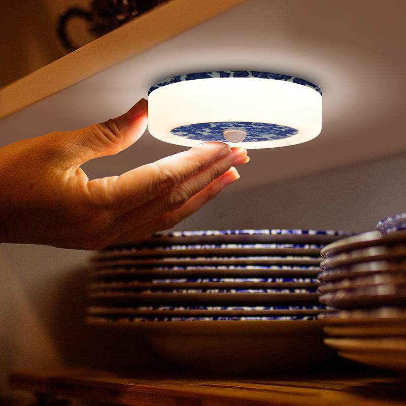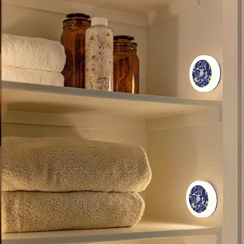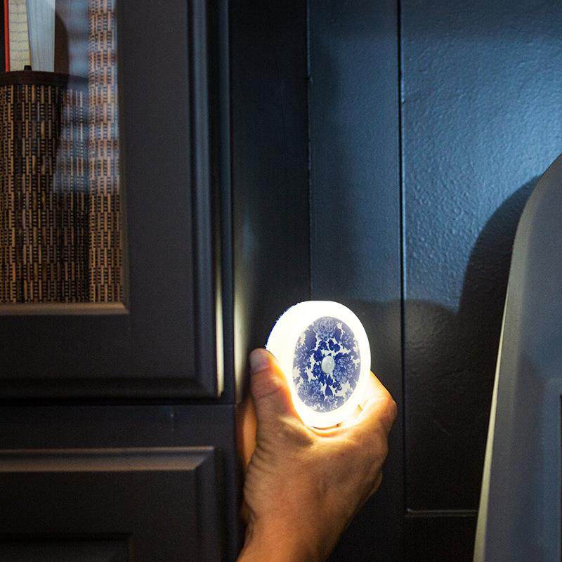 青花瓷铜币感应灯自动人体感应小夜灯氛围灯衣柜橱柜灯礼品儿童灯