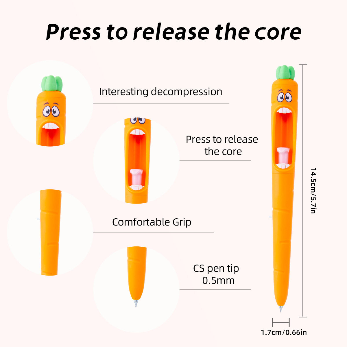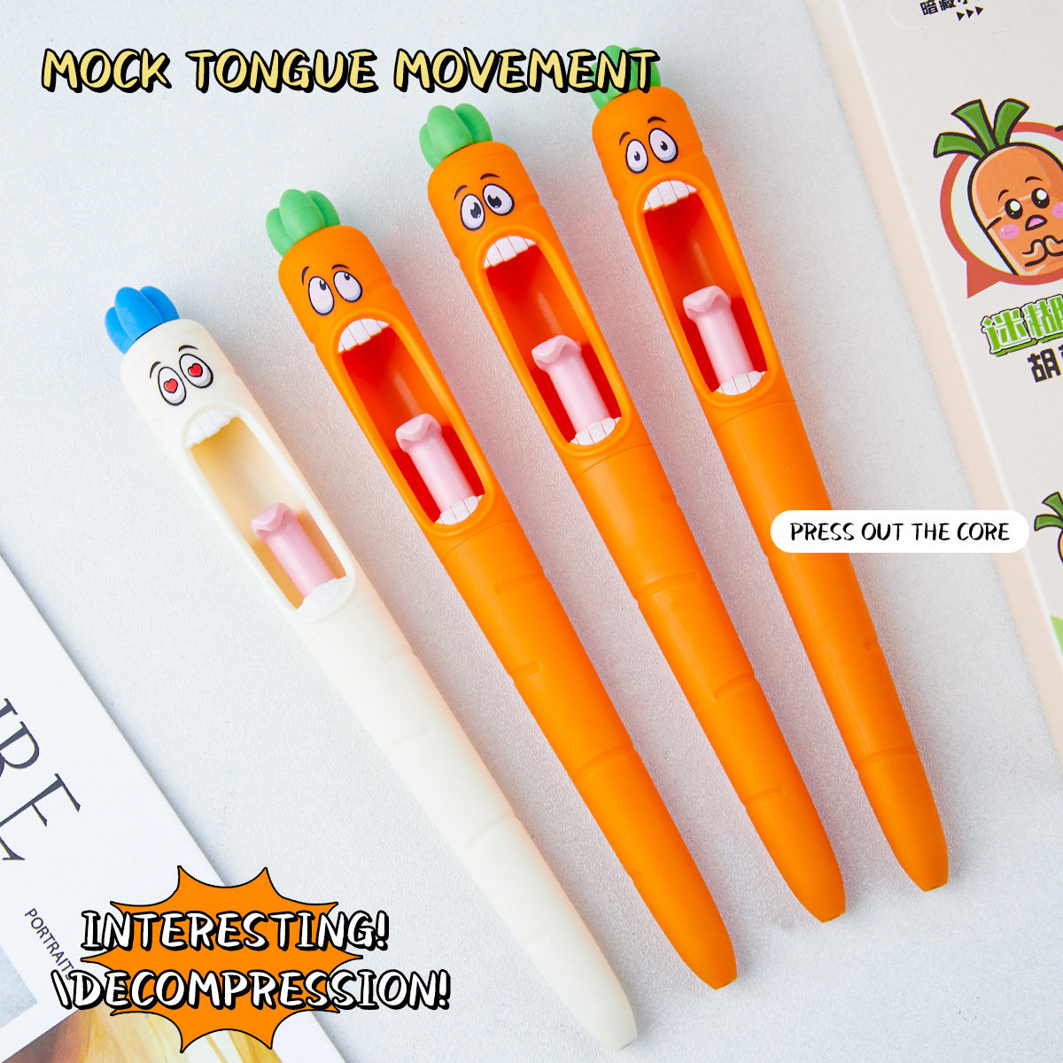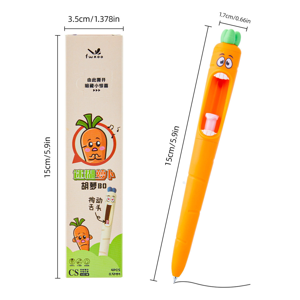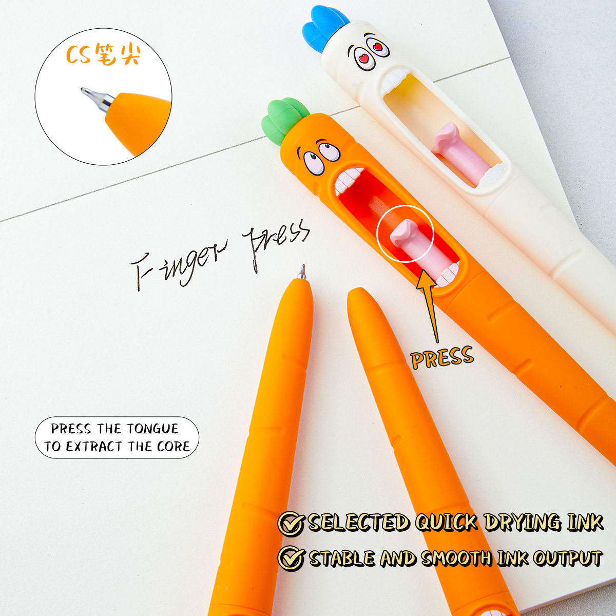 可爱创意中性笔儿童趣味胡萝卜速干0.5mm黑笔学生按动签字笔批发