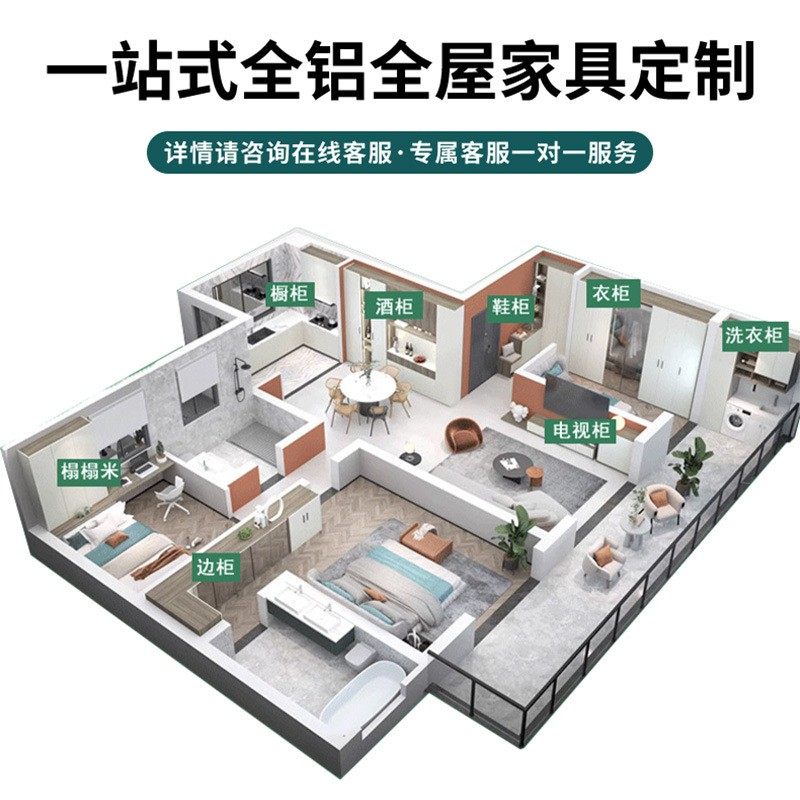 儿童房设计全铝家具榻榻米床衣柜一制体儿童房简约现代铝制衣柜
