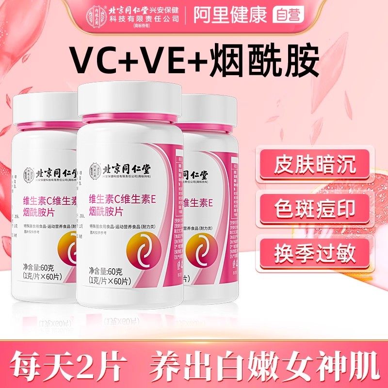 维生素c维生素e烟酰胺片vc咀嚼片维e美白淡斑去黄正品官方旗舰店
