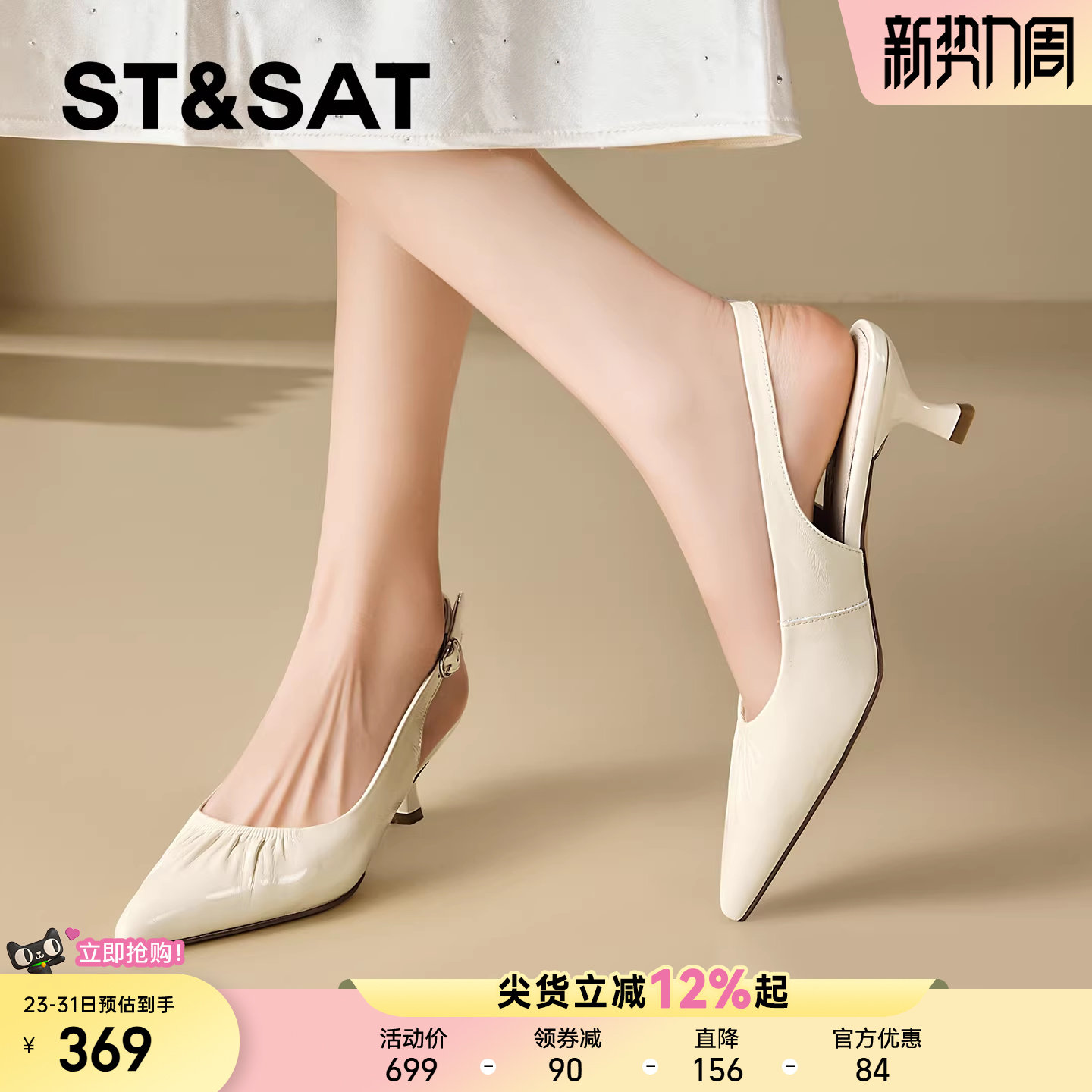 星期六仙女风真皮包头凉鞋女2026夏季新款尖头褶皱后空细跟高跟鞋