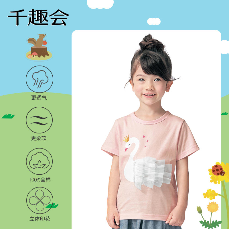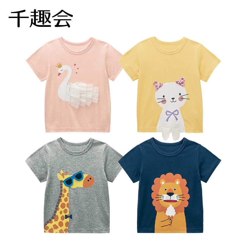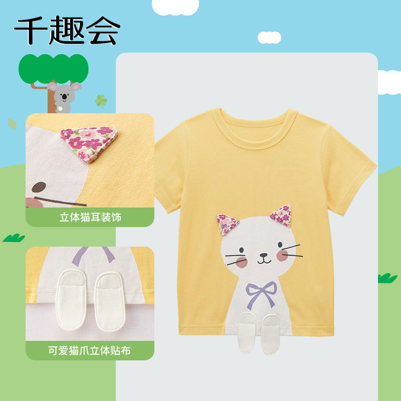 千趣会夏装款中小童幼儿园宝宝打底衫立体动物纯棉男女童短袖T恤