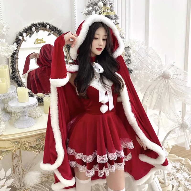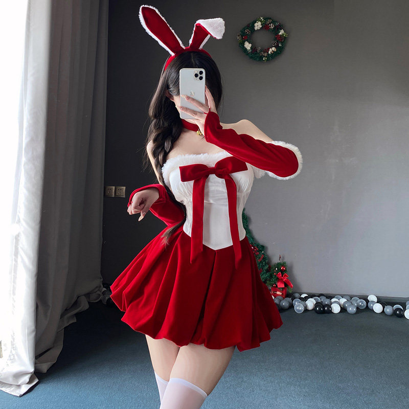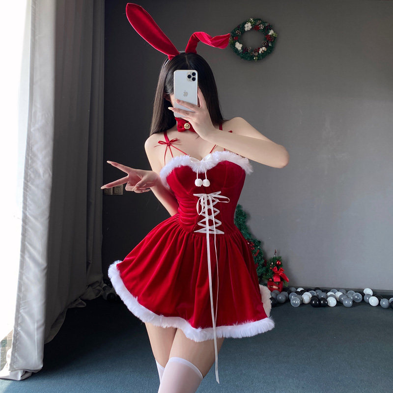 圣诞节战袍服装性感红色裙子兔女郎cos制服纯欲新年圣诞套装冬季