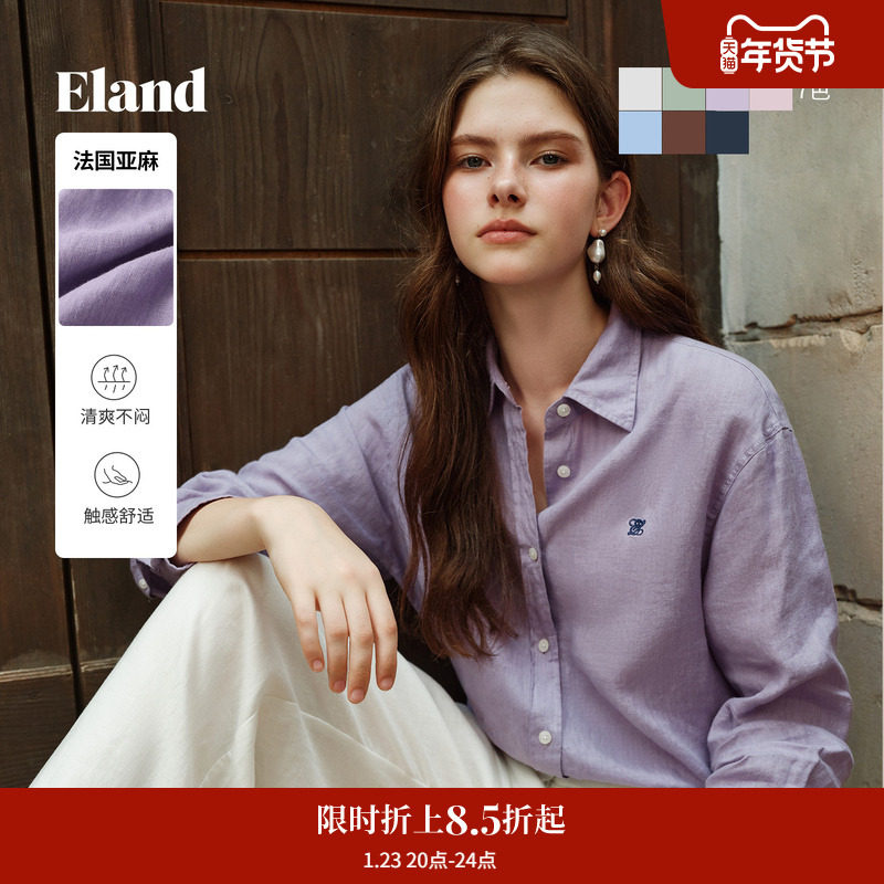 【100%亚麻】Eland衣恋衬衫男女款宽松版型长袖上衣2025夏季新款
