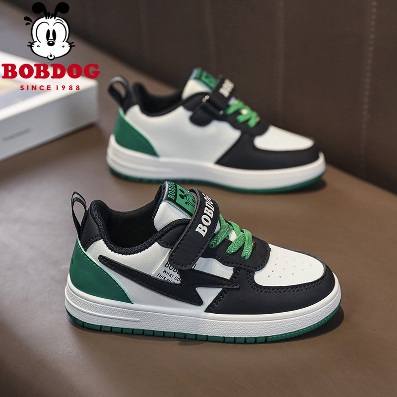 巴布豆童鞋男童运动鞋2025春秋新款皮面防水板鞋儿童鞋子红色休闲