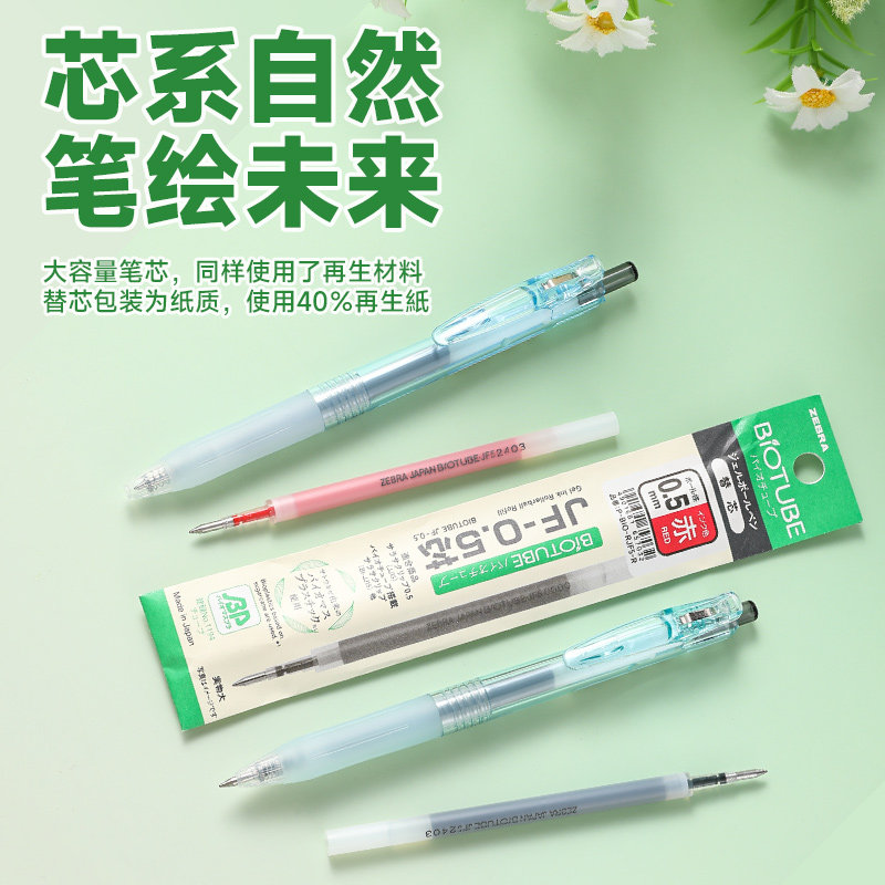 2024新款日本ZEBRA斑马中性笔BIO宝蔗笔JJ15透明高颜值BIOTUBE甘蔗可降解子弹头大容量按动中性笔黑色替芯0.5