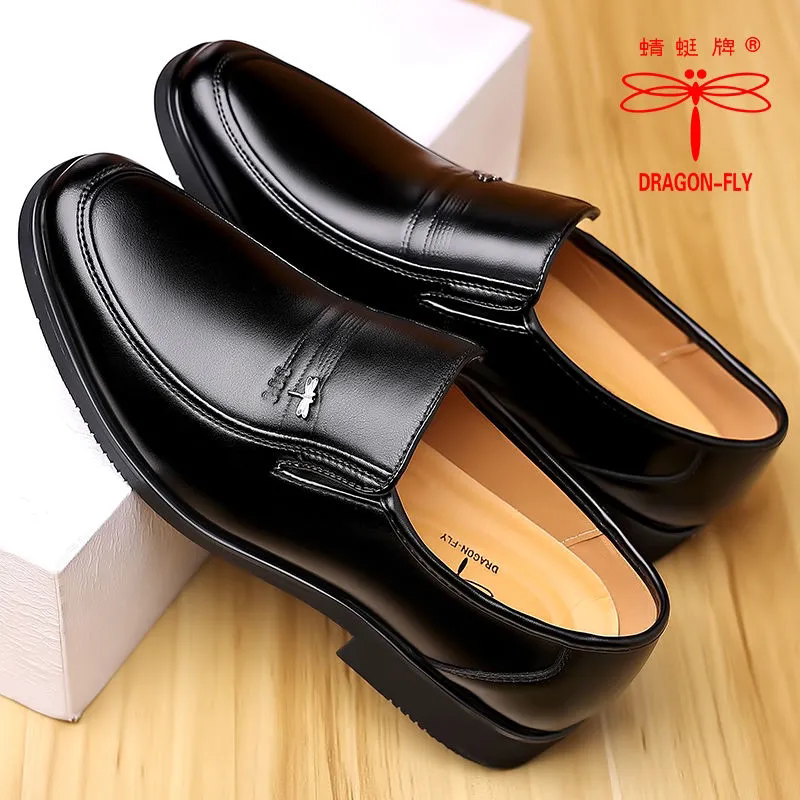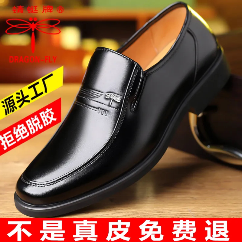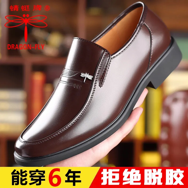 蜻蜓牌春季皮鞋男真皮商务正装爸爸鞋软底内增高中年男士皮鞋