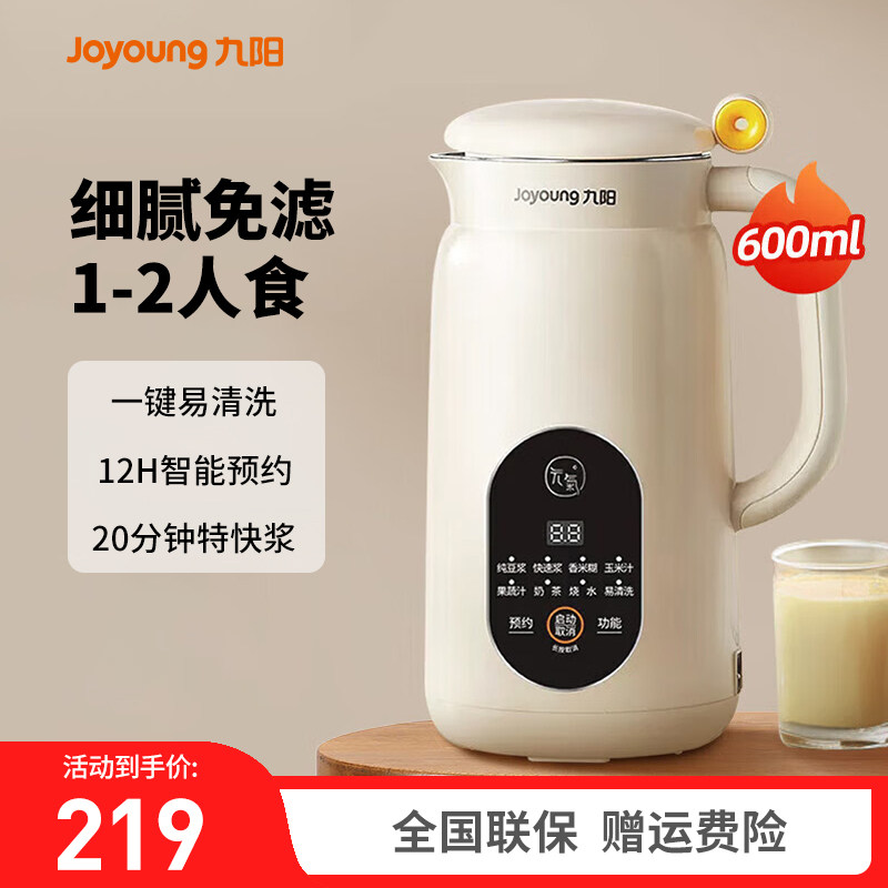九阳豆浆机家用1一3人全自动免煮破壁迷你免过滤液晶触屏官方正品