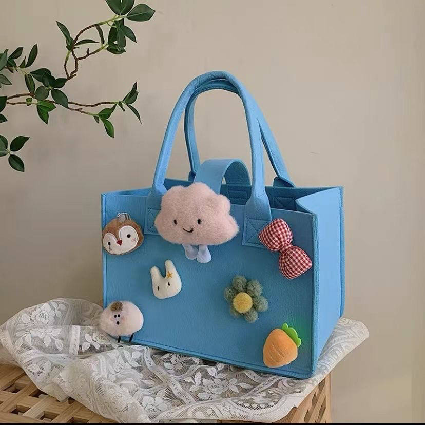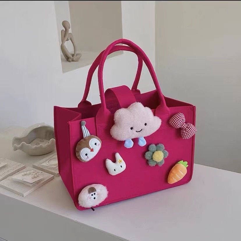 新款卡通毛毡包大容量手提购物袋加厚妈咪包网红百日宴礼品伴手礼