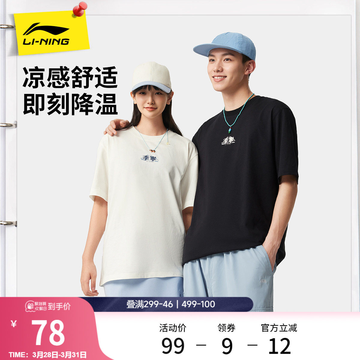 李宁短袖男士官方春夏半袖简约盐系情侣装黑色体恤纯棉运动T恤女