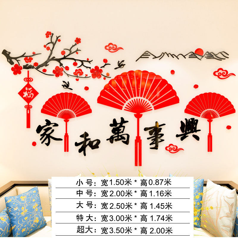 中式新年餐厅家和万事兴3d立体墙贴亚克力客厅沙发扇子背景墙贴画