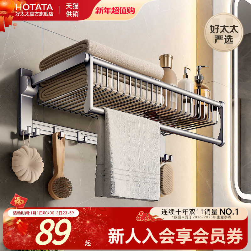佳帮手毛巾架卫生间置物架一体浴室免打孔厕所洗手间太空铝浴巾架