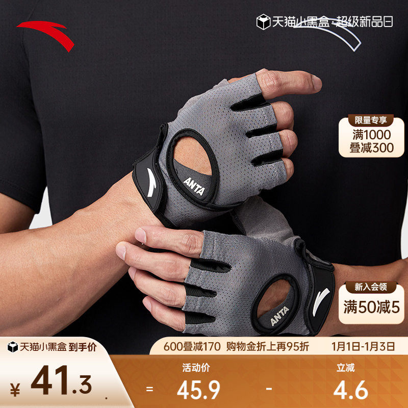 安踏运动手套男女骑行手套登山健身哑铃露指可调节防滑瑜伽手套