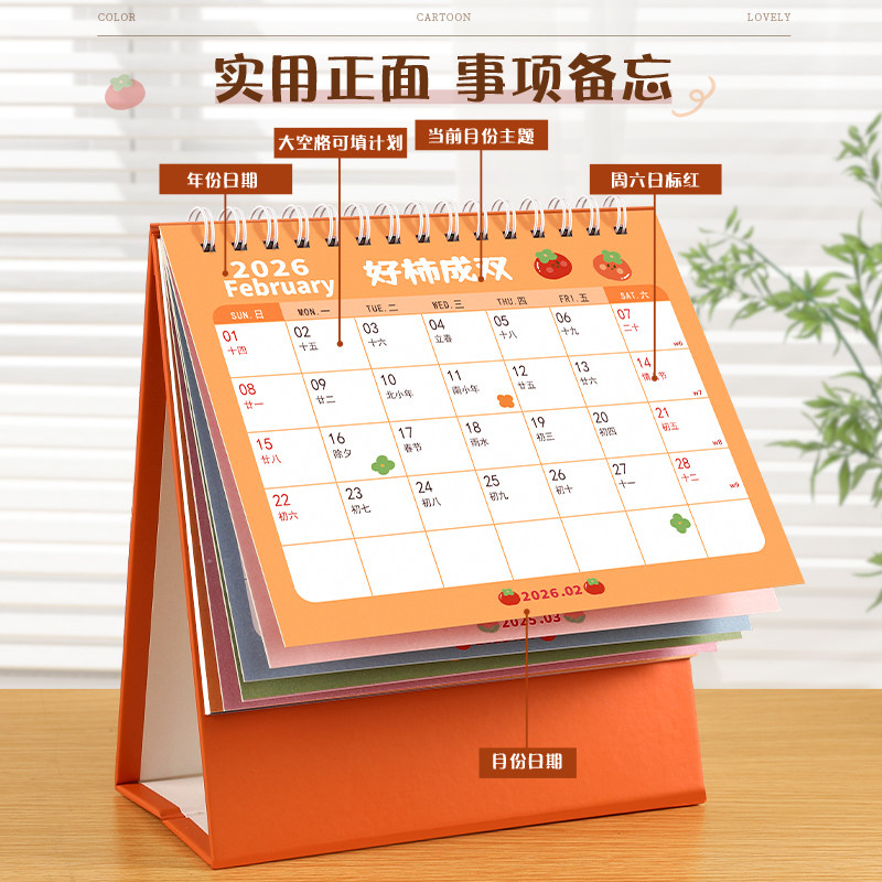 2026年台历新款办公桌面摆件2025日历计划本打卡倒计时马年工作记事大格子小清新简约迷你卡通儿童可爱小台历