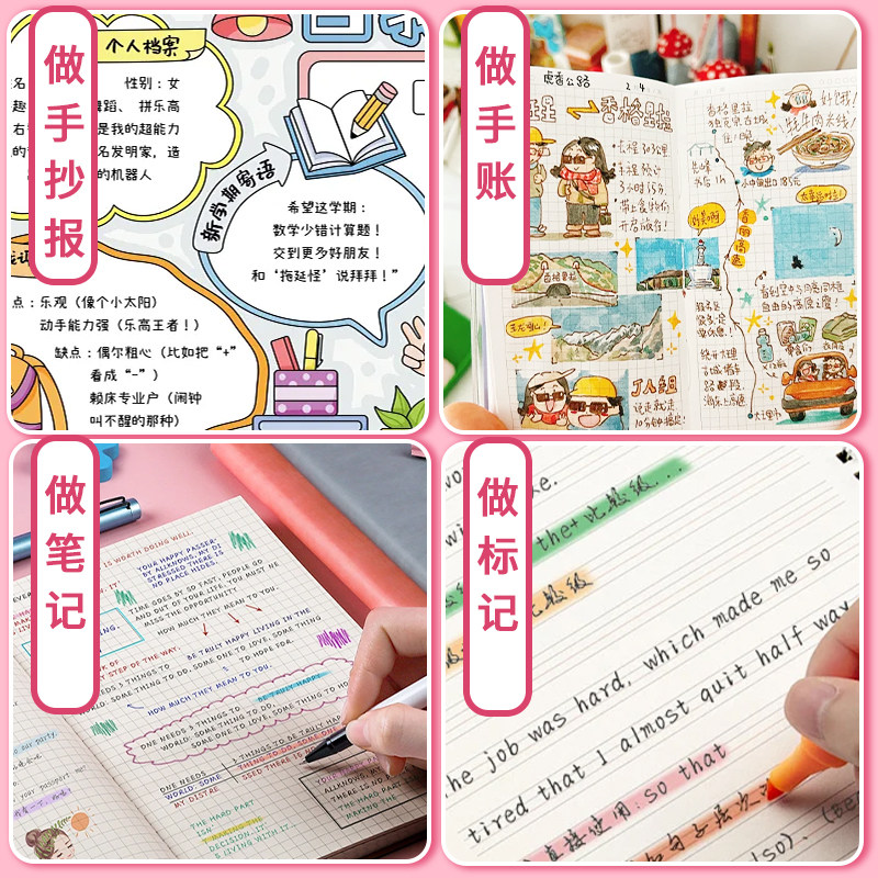 晨光魔法手账笔消色笔荧光笔可叠色双头记号笔手账绘画标记划重点高颜值彩色笔大容量学生用做笔记手抄报速干