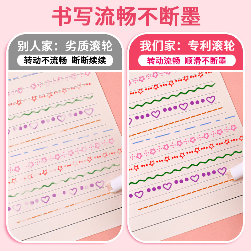 花型轮廓曲线笔手帐图案彩色标记花纹荧光儿童手抄报印花滚轮专用