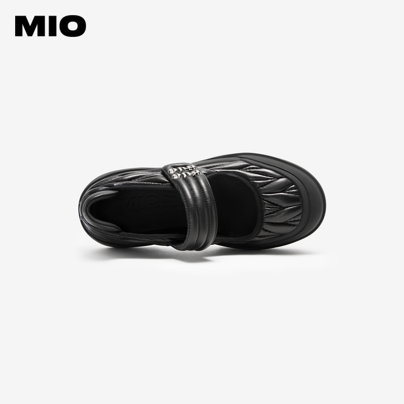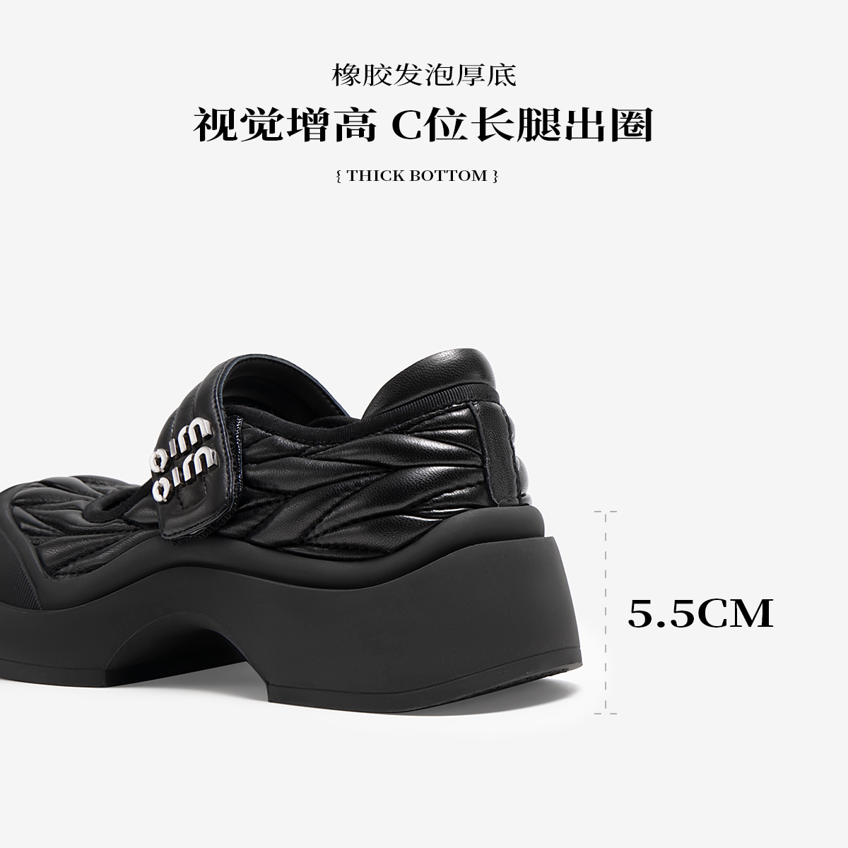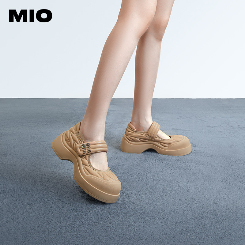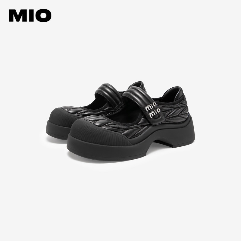 MIO米奥魔术贴玛丽珍鞋圆头小皮鞋坡跟厚底日式软皮浅口单鞋女鞋