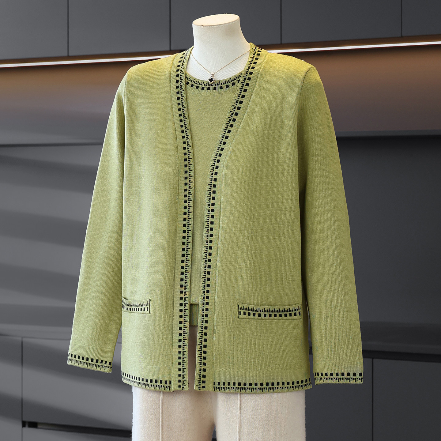 2026新款假两件针织衫妈妈装秋冬加绒加厚毛衣中老年女装保暖上衣