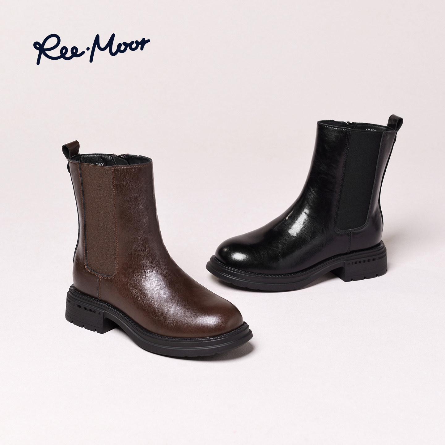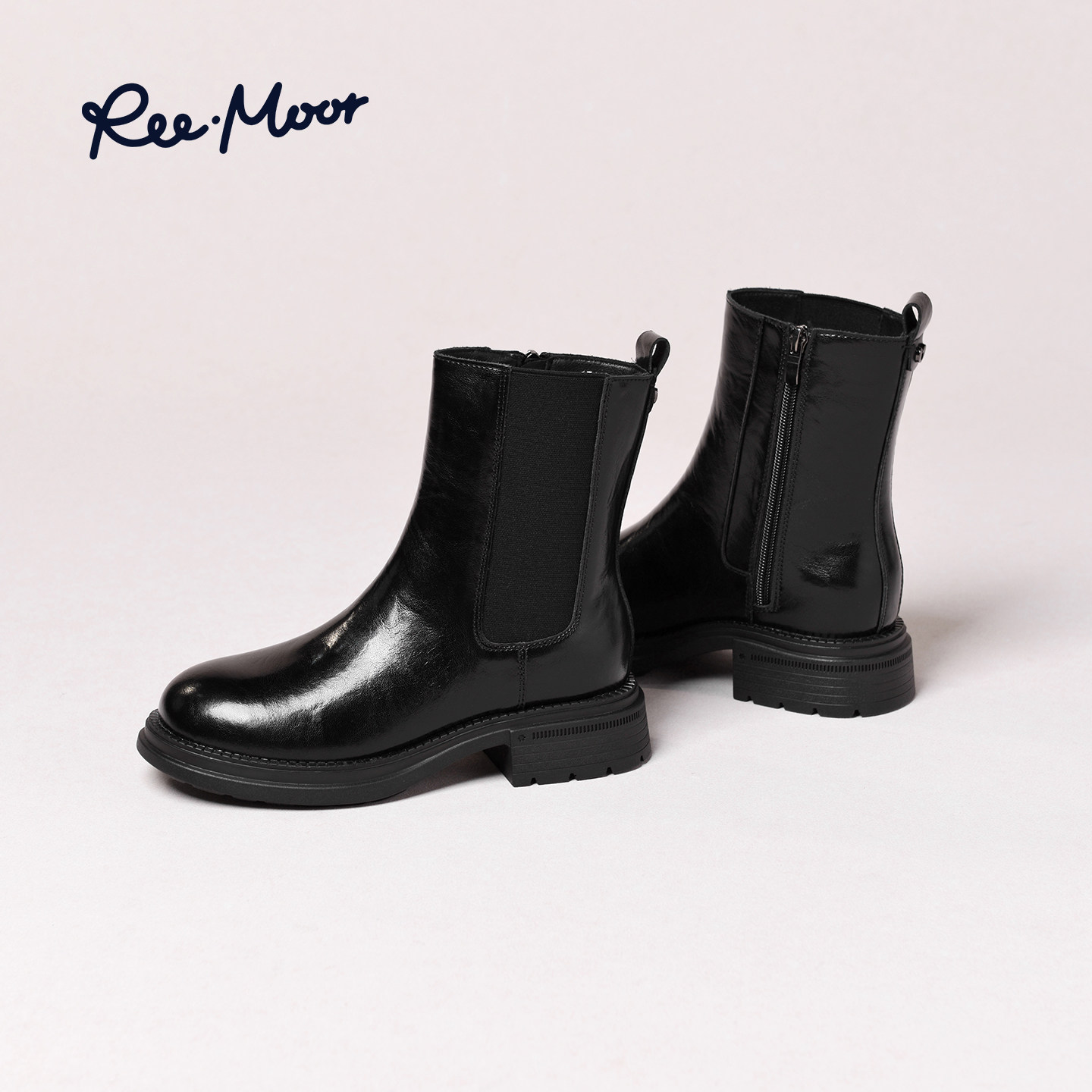 REEMOOR睿慕2025秋季新款英伦风靴子切尔西靴女烟筒靴粗跟短靴女