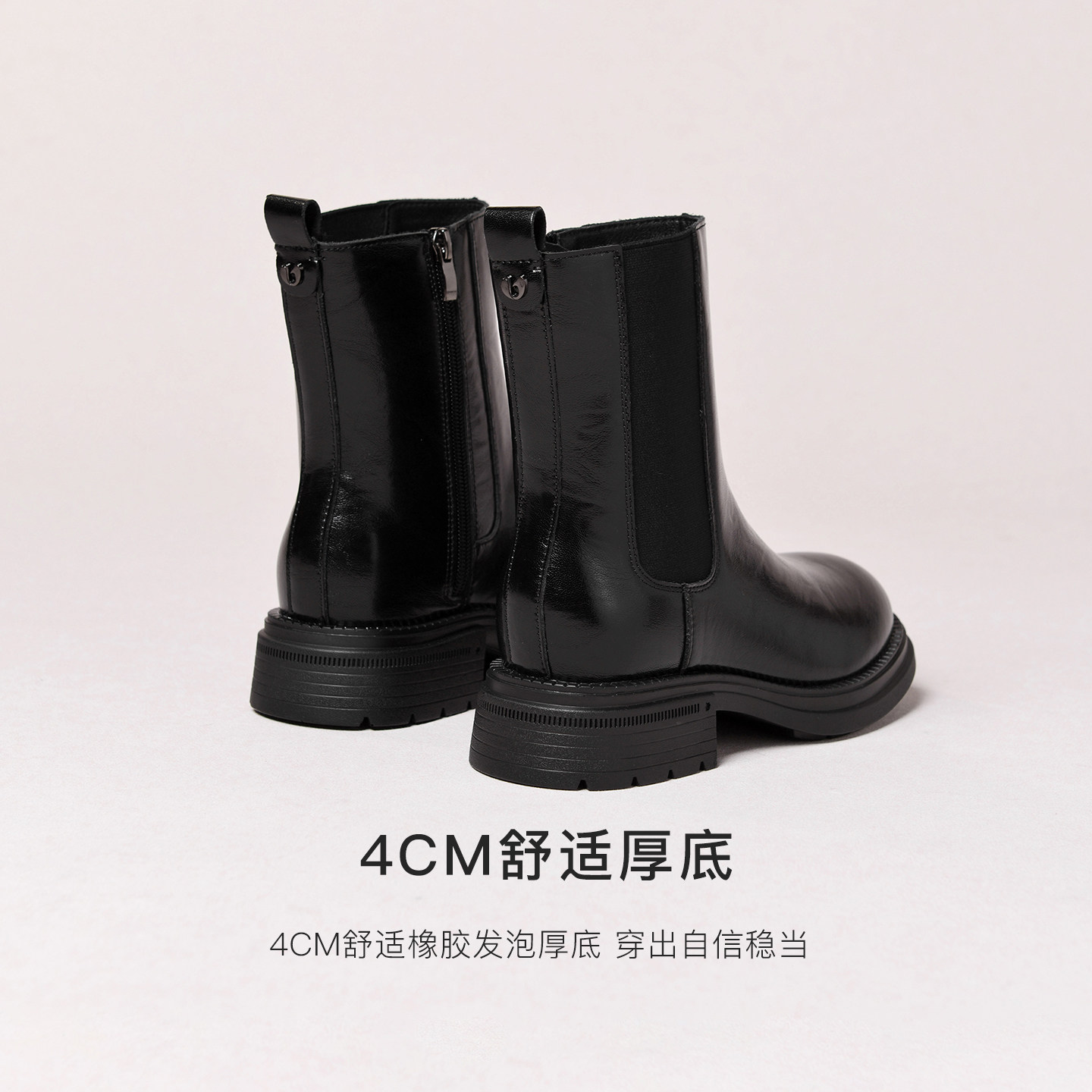 一点五隐形增高16-10CM女士短靴女士真皮切尔西鞋子经典英伦风