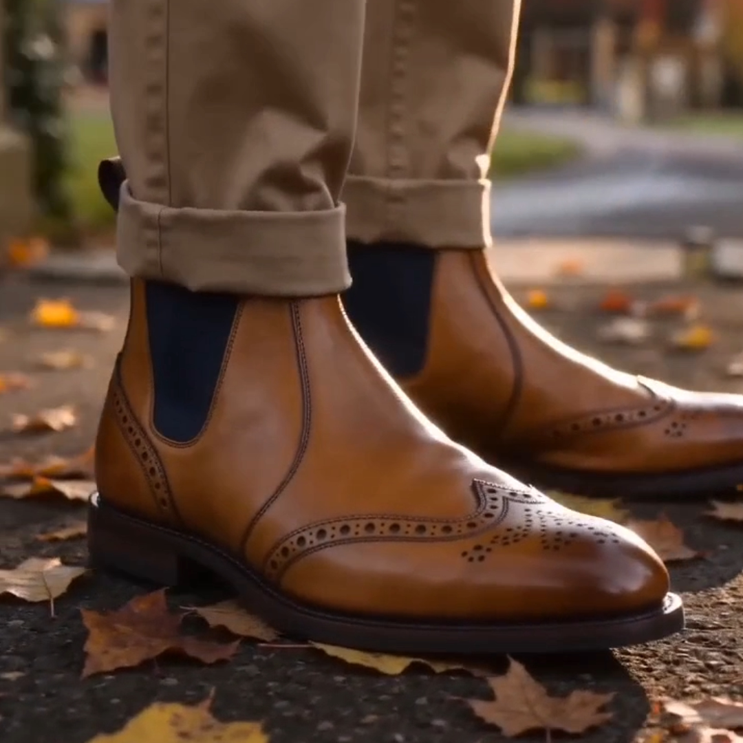 Loake英国进口固特异商务休闲男士切尔西布洛克雕花短靴 Hoskins
