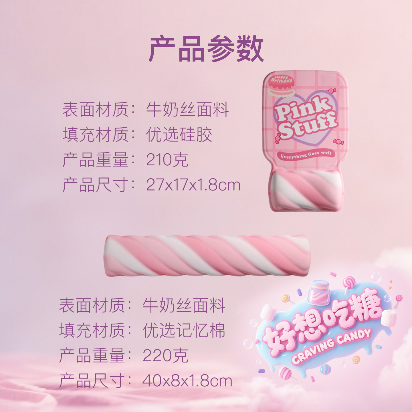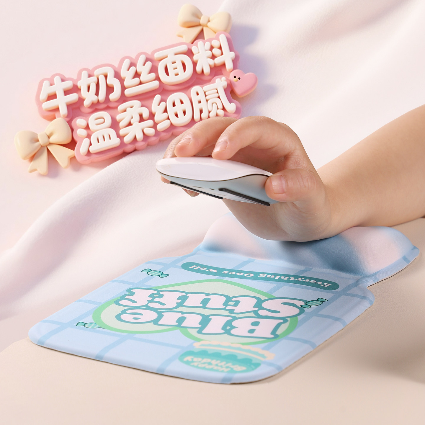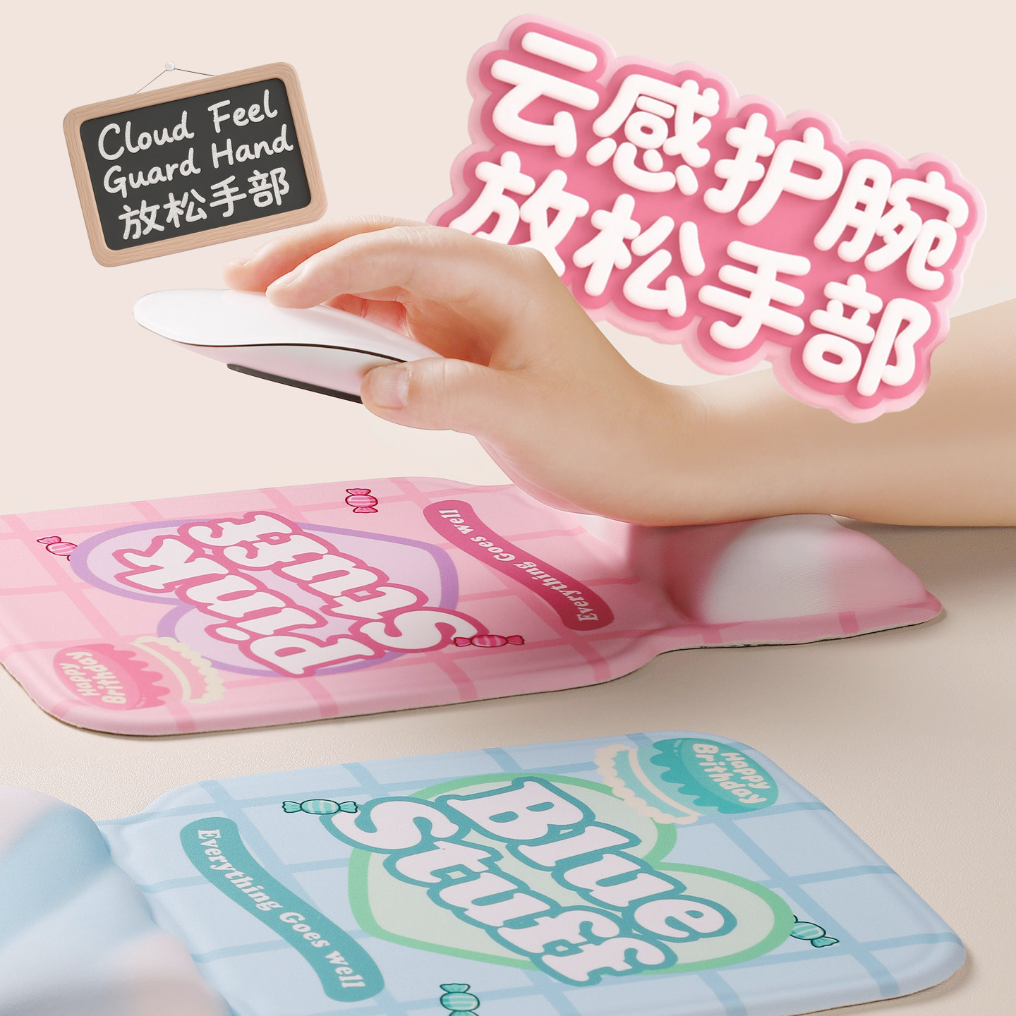 卡通棉花糖少女心鼠标垫可爱卡通办公桌面垫便携护腕垫硅胶手腕垫