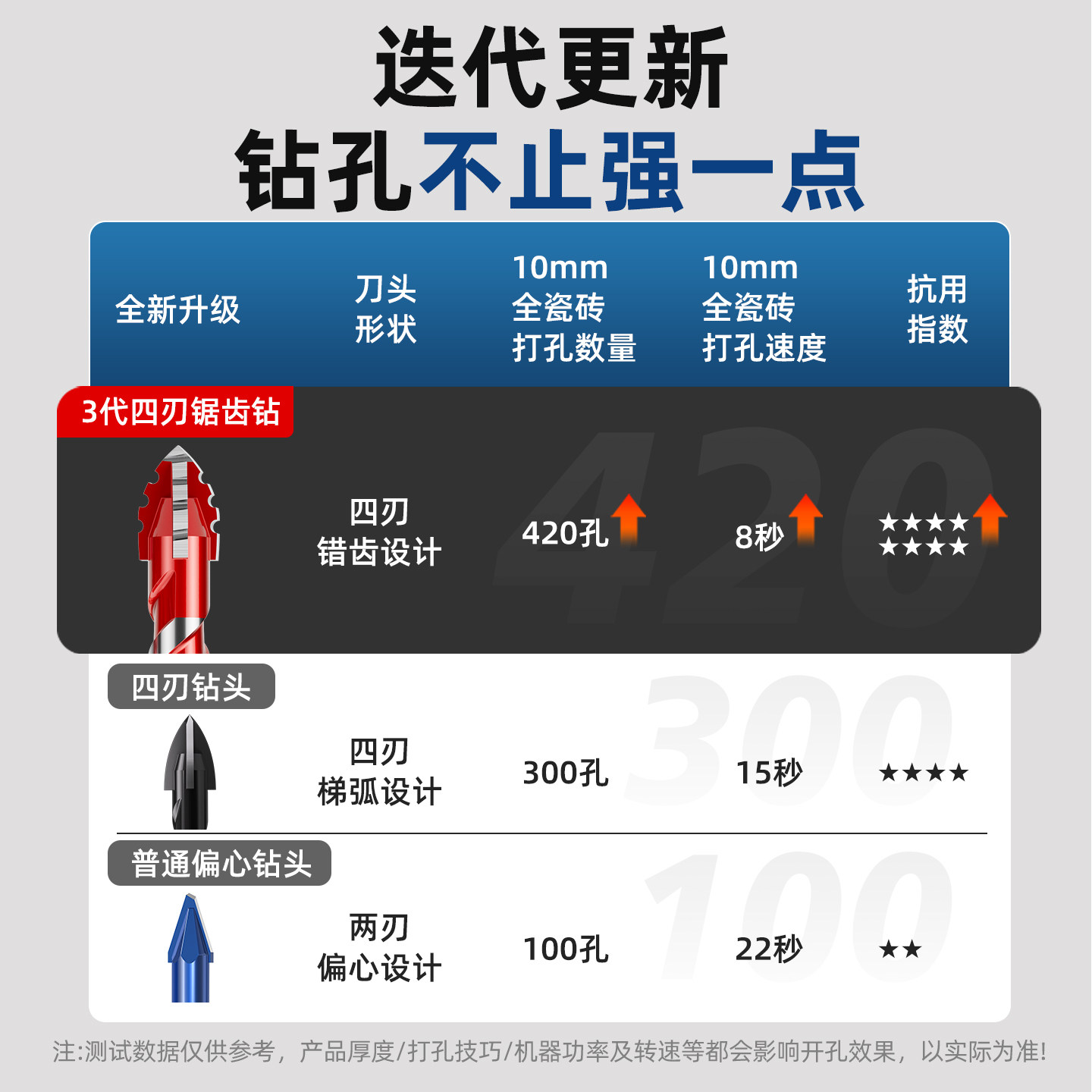 蓝胜瓷砖打孔钻头混凝土钻孔专用超硬四刃锯齿偏心钻高硬度霸王钻