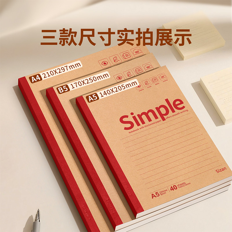 b5牛皮纸笔记本本子加厚简约高中生初中生专用工作记录a5大学生记作业本a4软面抄办公用横线本学习练习本平摊