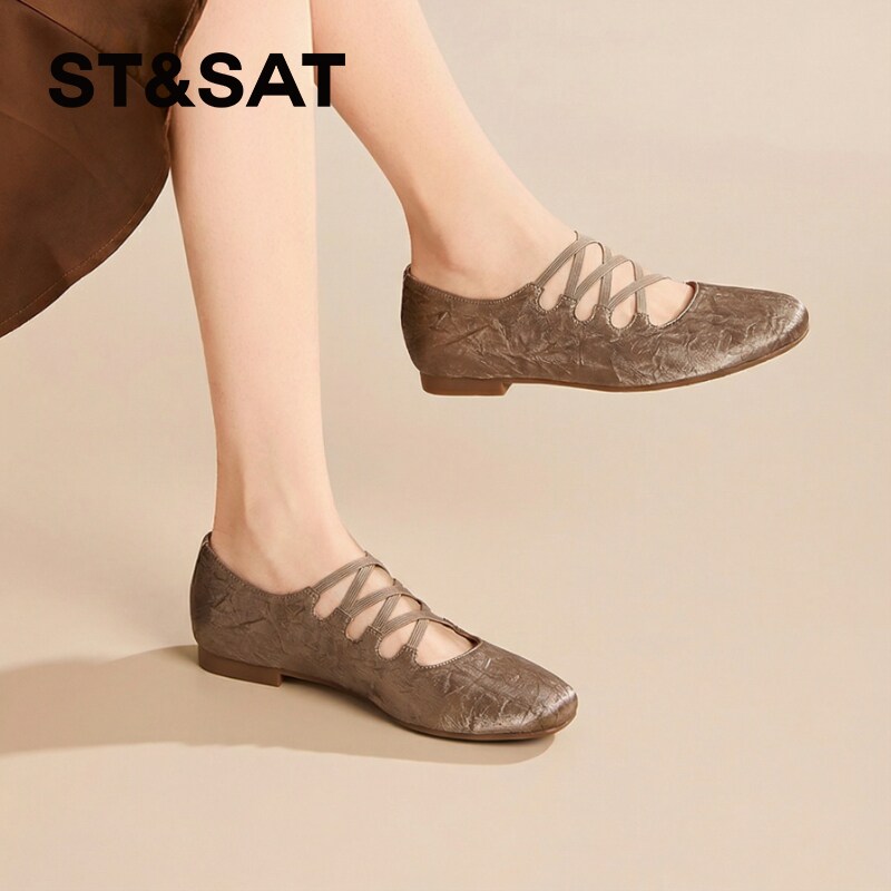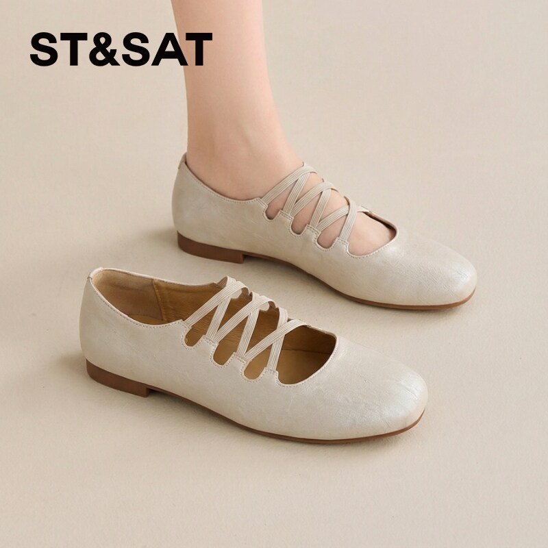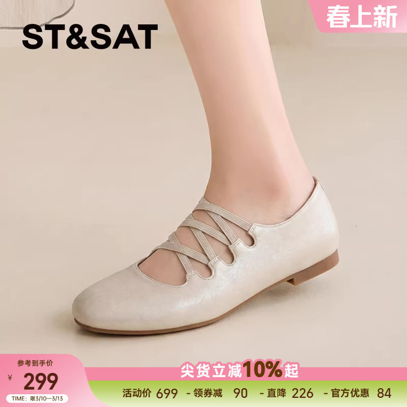 星期六巨柔软芭蕾舞蹈交叉松紧带玛丽珍鞋女2026软底复古浅口单鞋