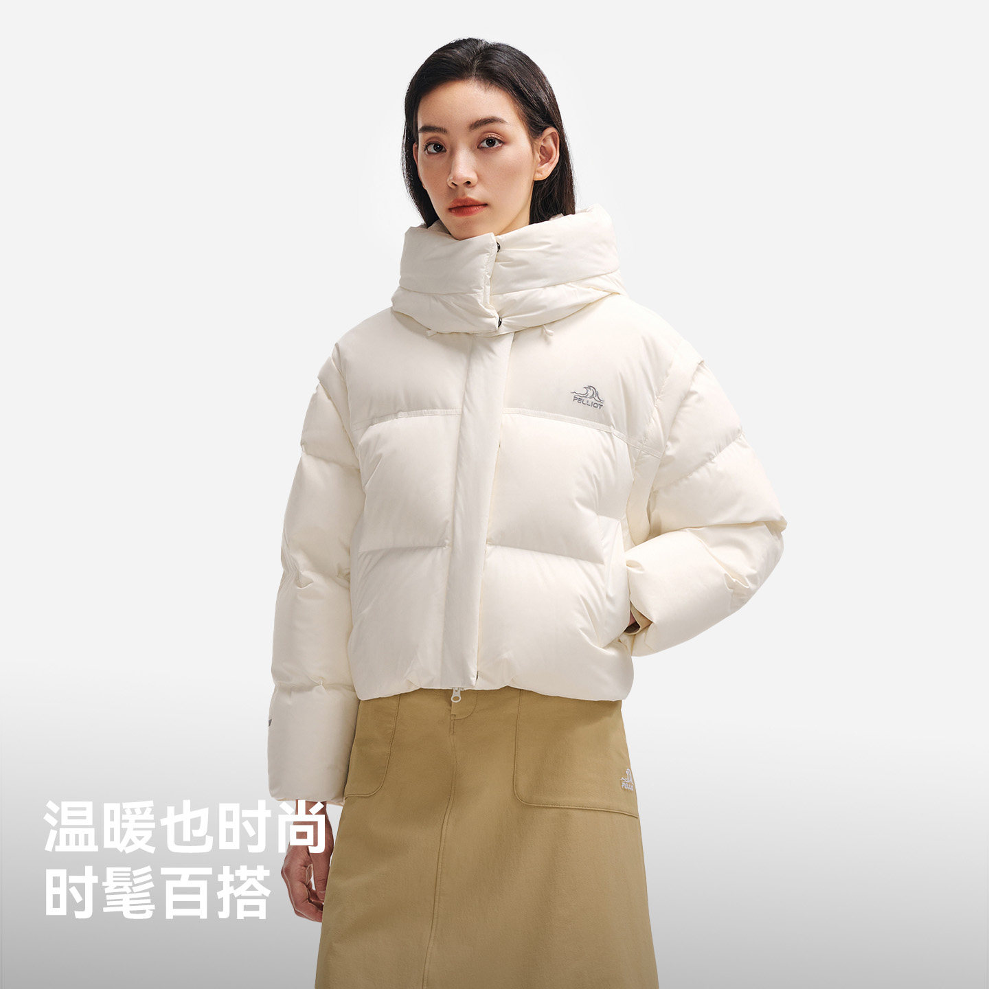 【鞠婧祎同款】鸭鸭2025年冬新款百搭短款女士纯色立领羽绒服外套
