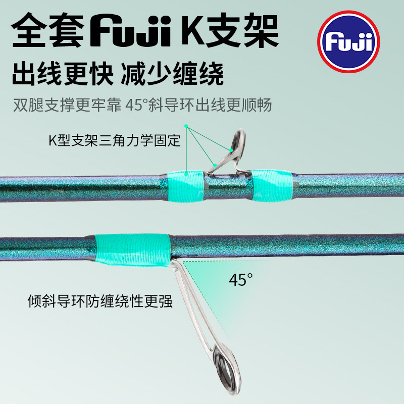 科迈雷幻灵马口Fuji0环实心超软弹射双打马口枪直柄微物路亚单竿