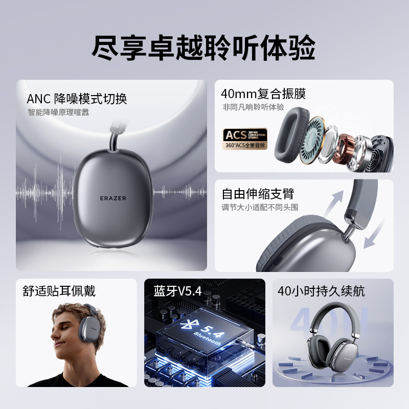联想生态品牌异能者蓝牙耳机无线头戴式耳麦ANC主动降噪高清音质*