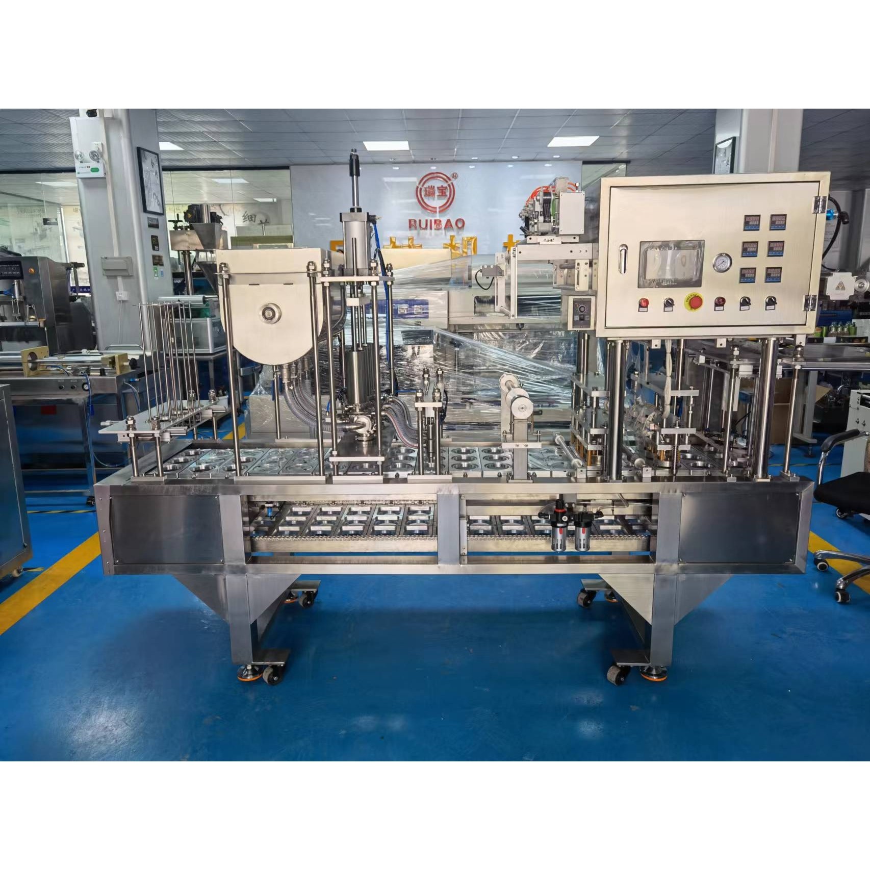 一出三自动落杯灌装封口机绿豆沙酸梅汤灌装封口不锈钢+气动打码